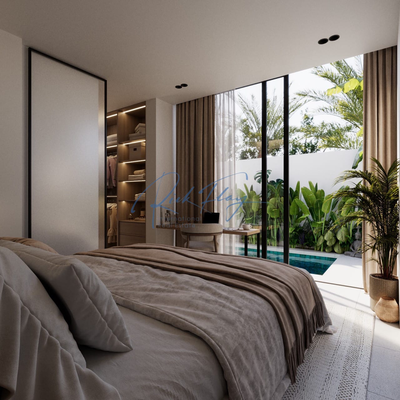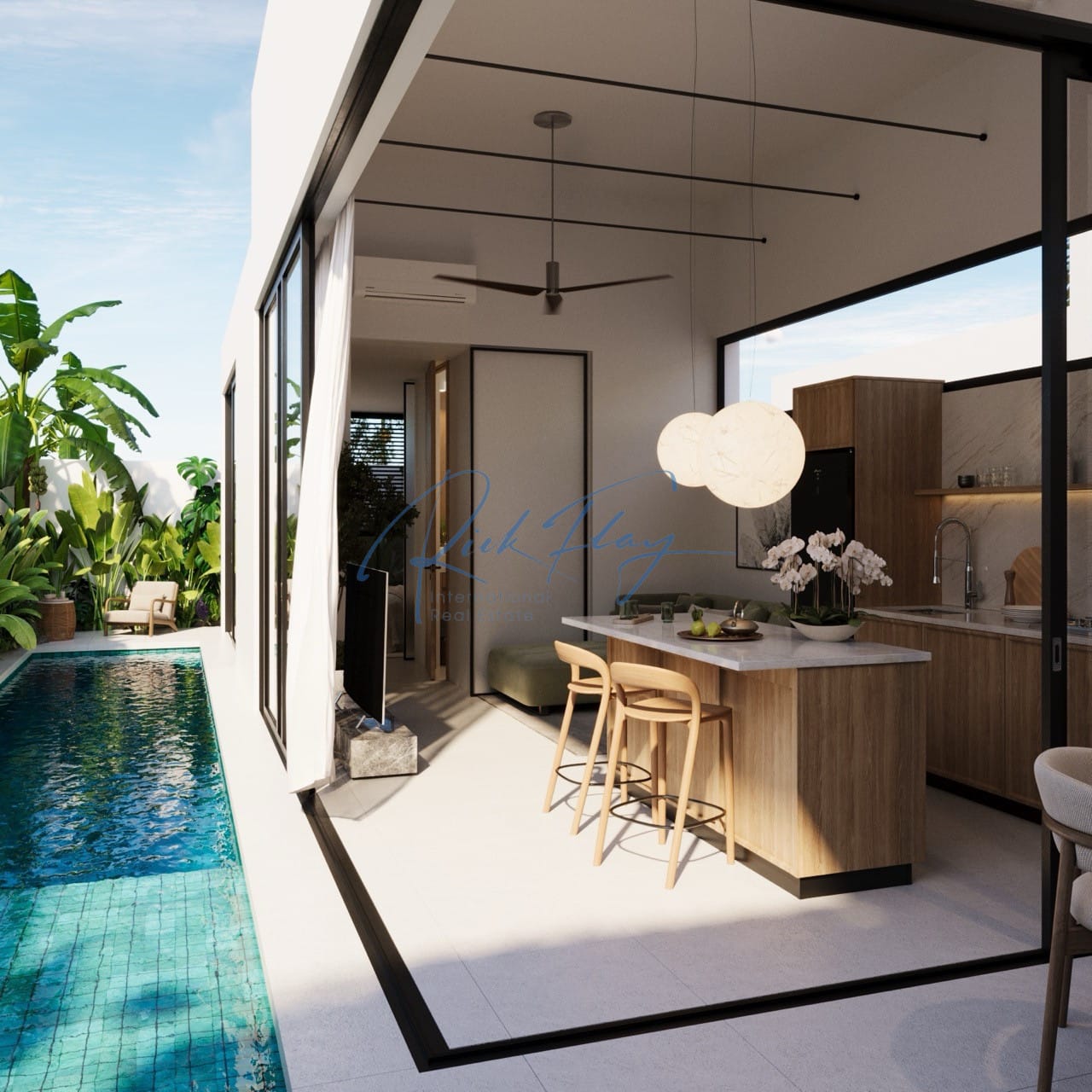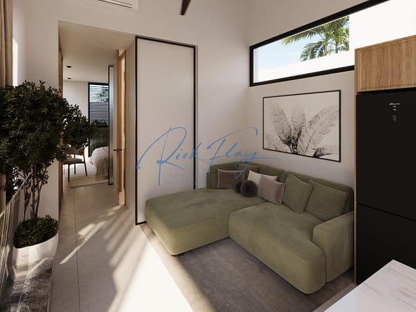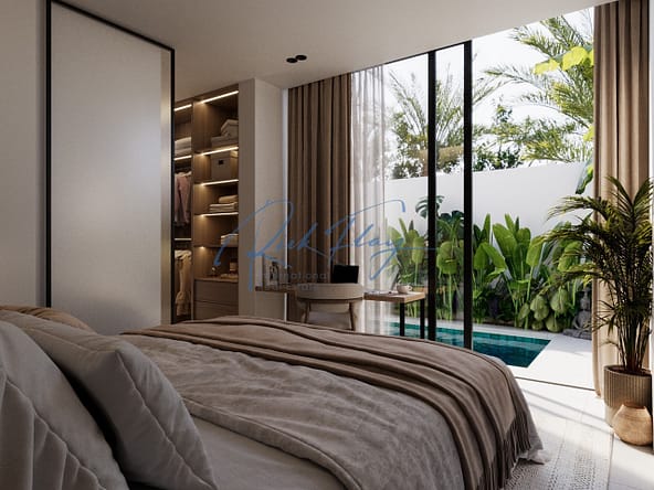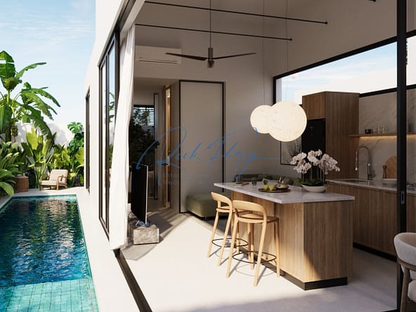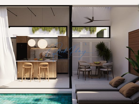 Discover this beautifully designed one bedroom villa, offering the perfect blend of practicality and sophistication with a serene Japandi-inspired interior. With a long garden area and private pool.