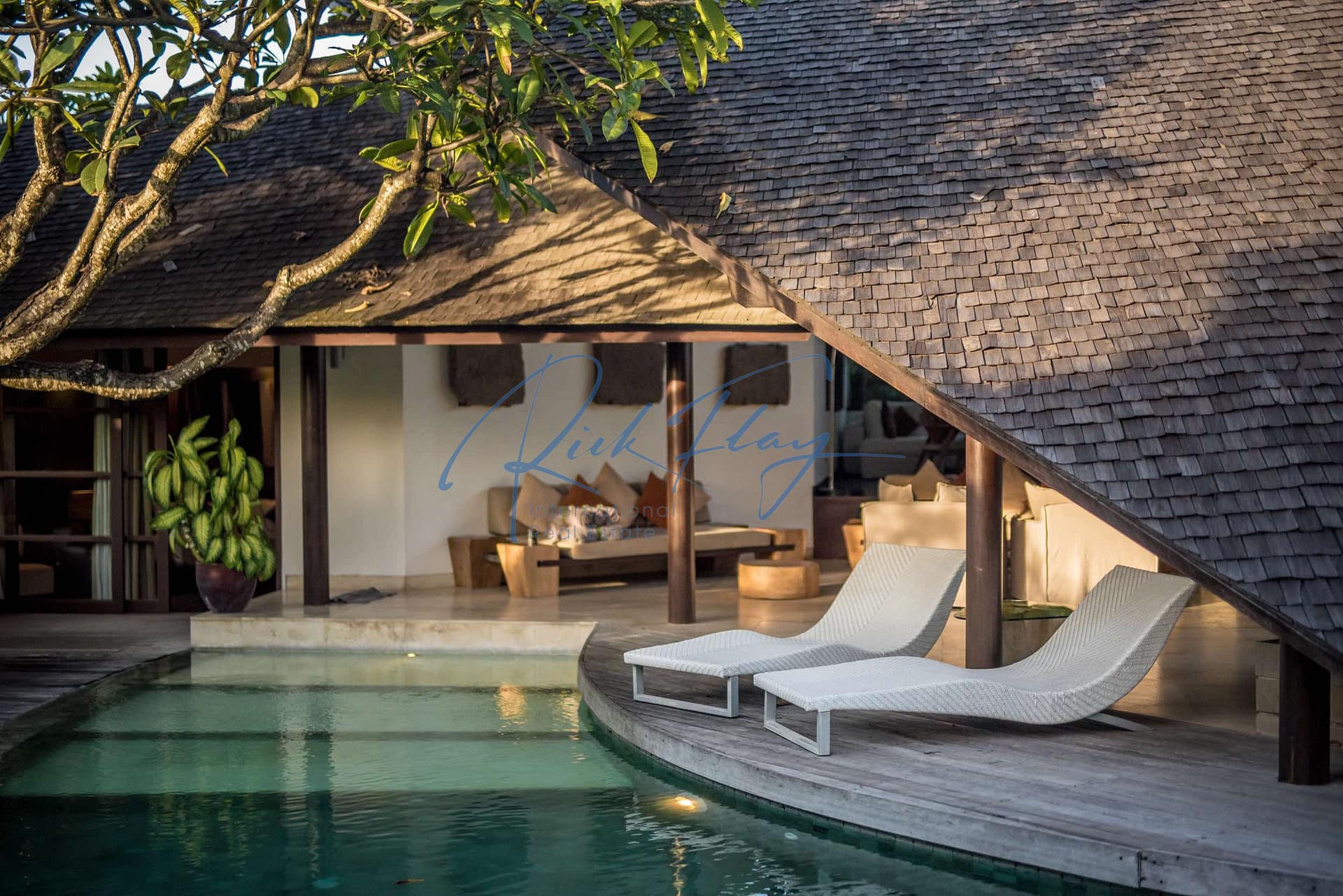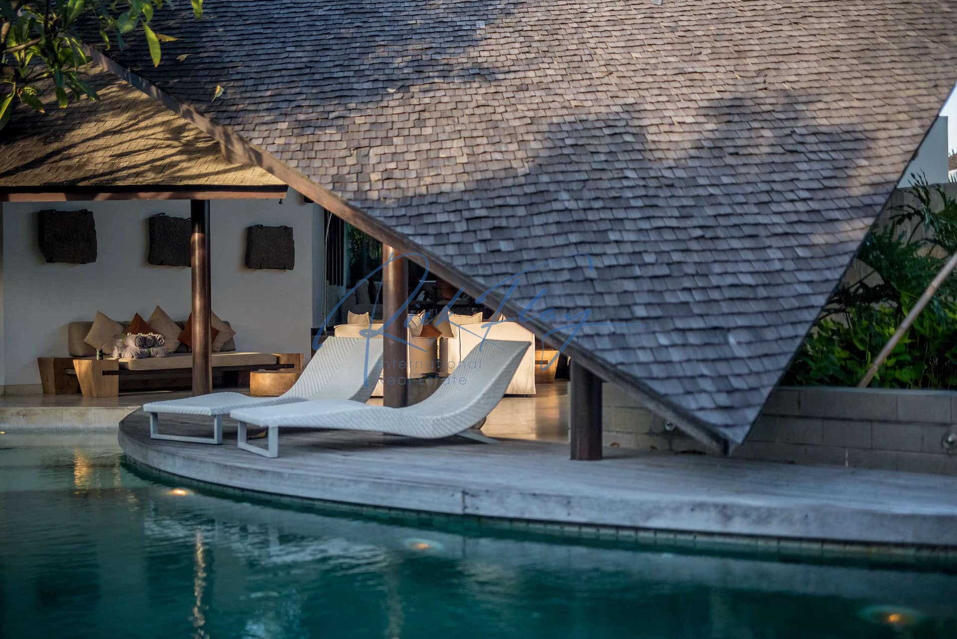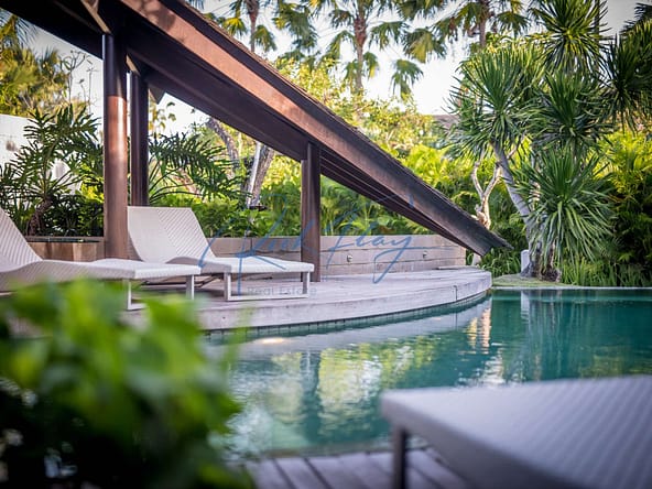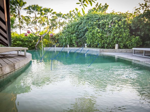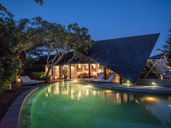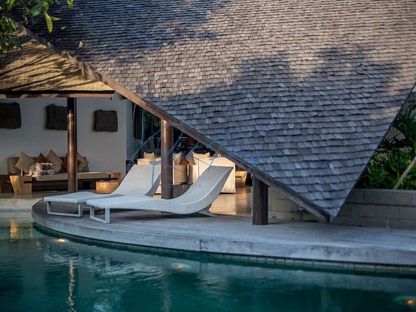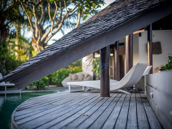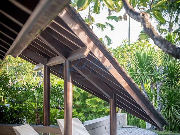 This designer villa is available on a LEASEHOLD basis until 15th of January 2058 plus a 2 x 20-year extension option. Resourcefully integrated into the natural contours of 607 sqm of land and covering 253 sqm of floor space, the distinctive architecture is characterized by sweeping, shingle roofs that extend almost to ground level in a corresponding pairing of geometric shapes.