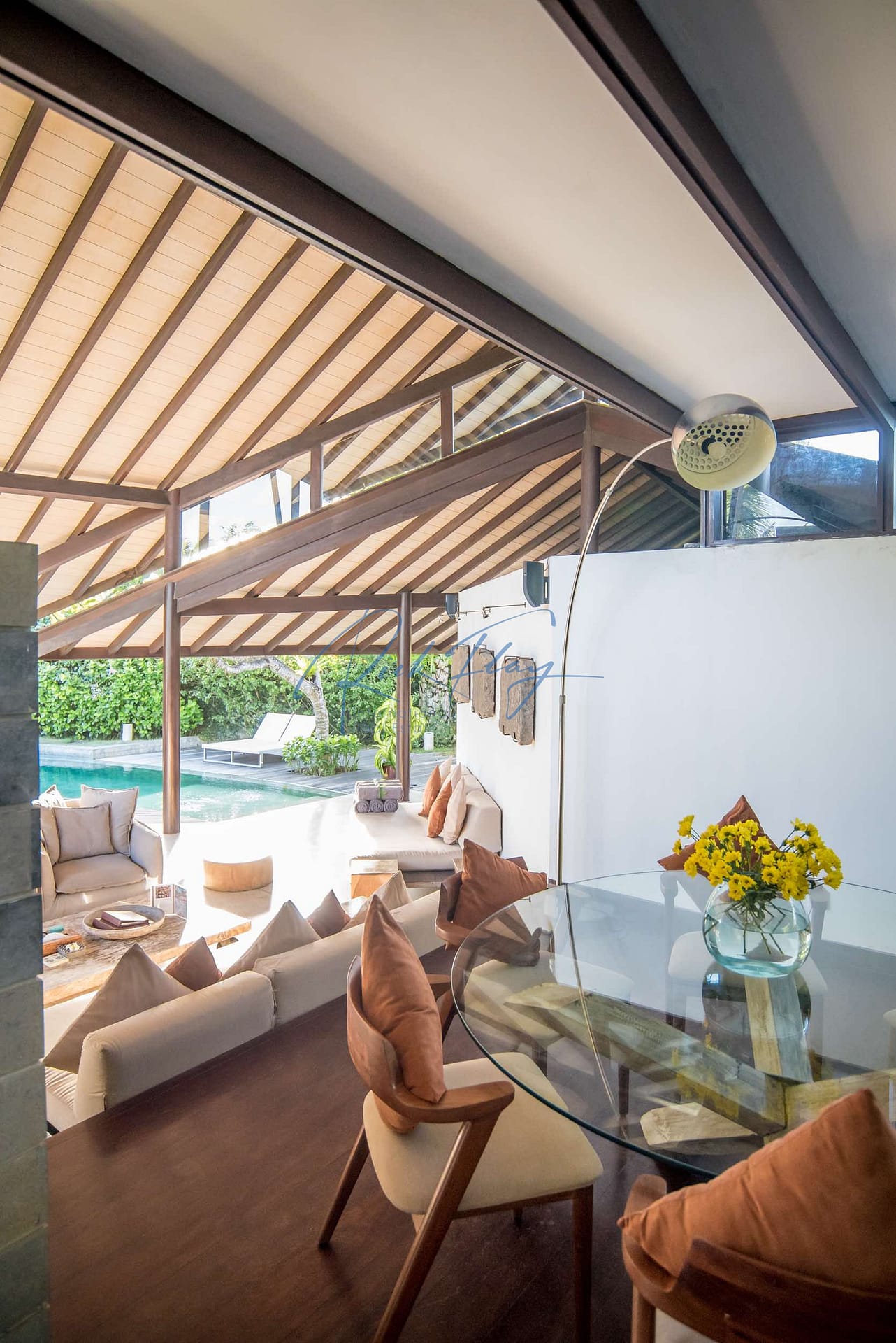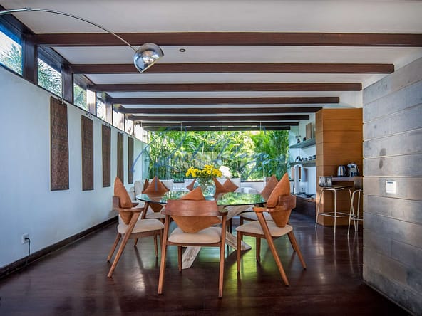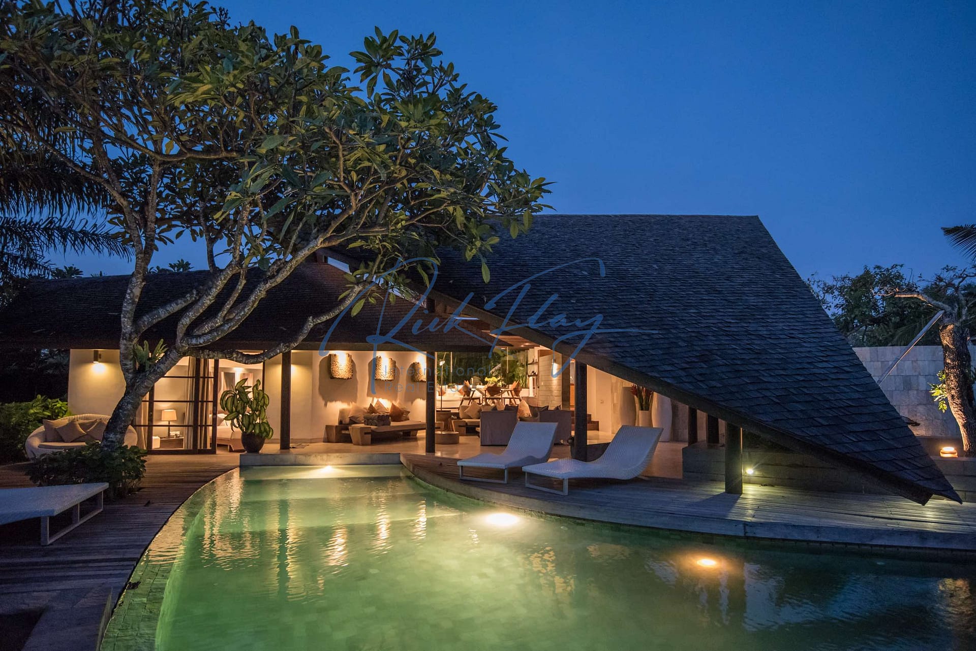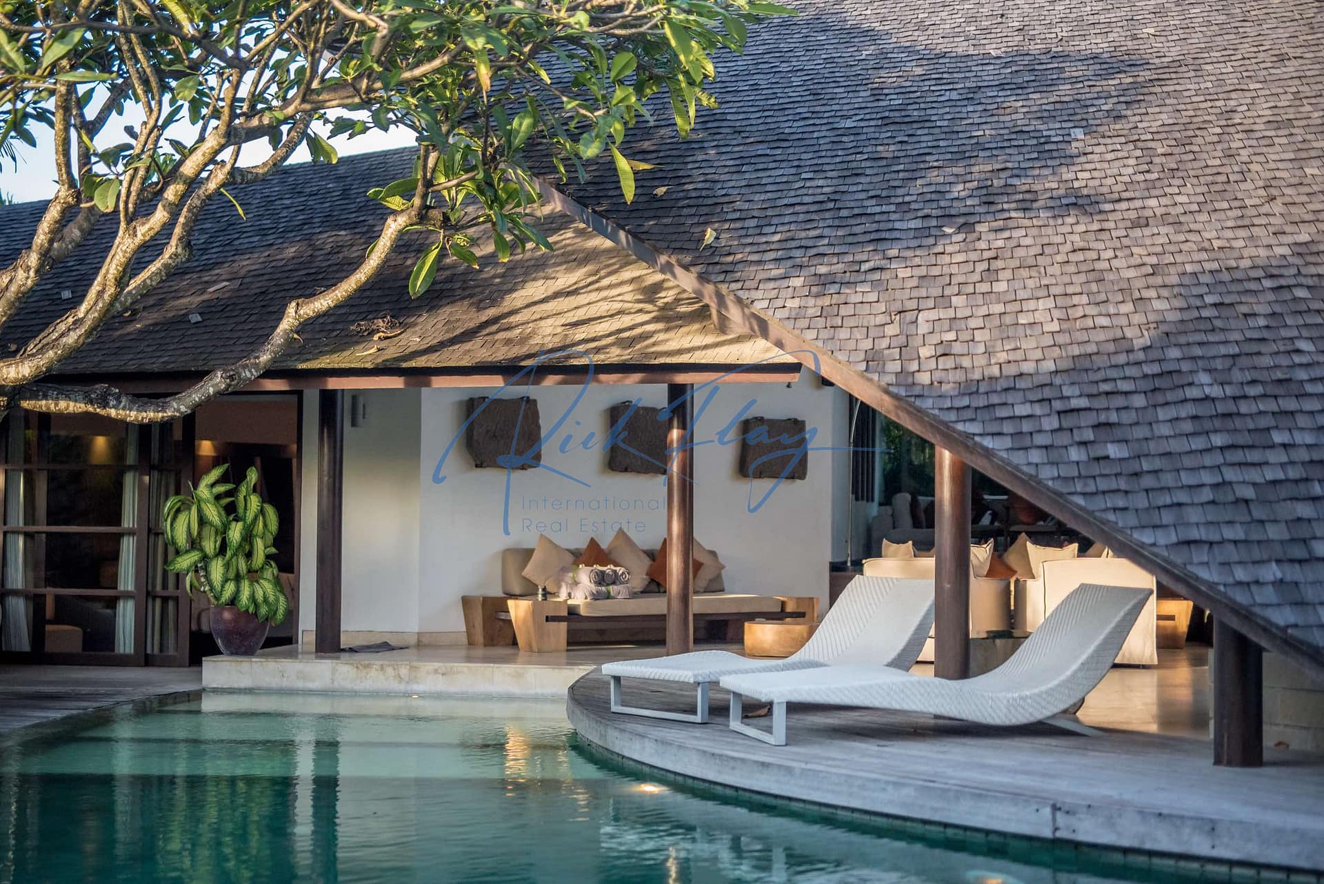 This designer villa is available on a LEASEHOLD basis until 15th of January 2058 plus a 2 x 20-year extension option. Resourcefully integrated into the natural contours of 607 sqm of land and covering 253 sqm of floor space, the distinctive architecture is characterized by sweeping, shingle roofs that extend almost to ground level in a corresponding pairing of geometric shapes.