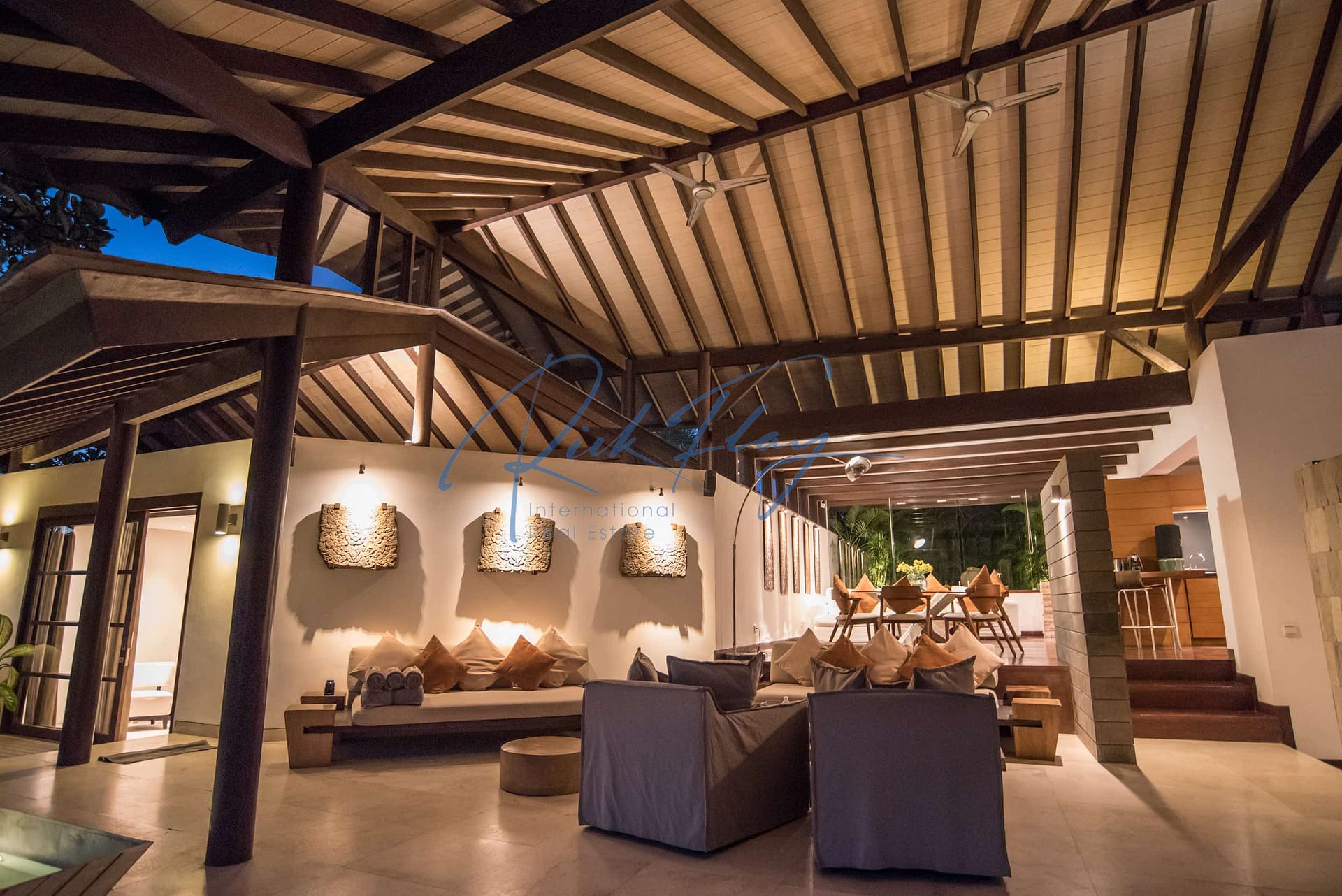Inside, the organic-shaped walls and low roofs serve to create cosy nooks within the fully -furnished open-plan living area complete with superior furnishings and alfresco dining spaces.