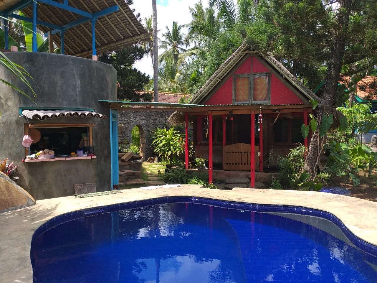 Built to the traditional joglo building and the rules of the Balinese and Chinese Feng Shui were applied to ensure optimum relaxation for guests. The Villa has 3 rooms and 4 bathrooms, all with their own ensuite bathrooms and WIFI and features a Swimming Pool with organic filtration system with a corner for children to swim.