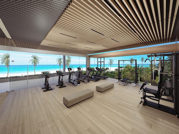 Clubhouse on the beach with gym and on site restaurant.