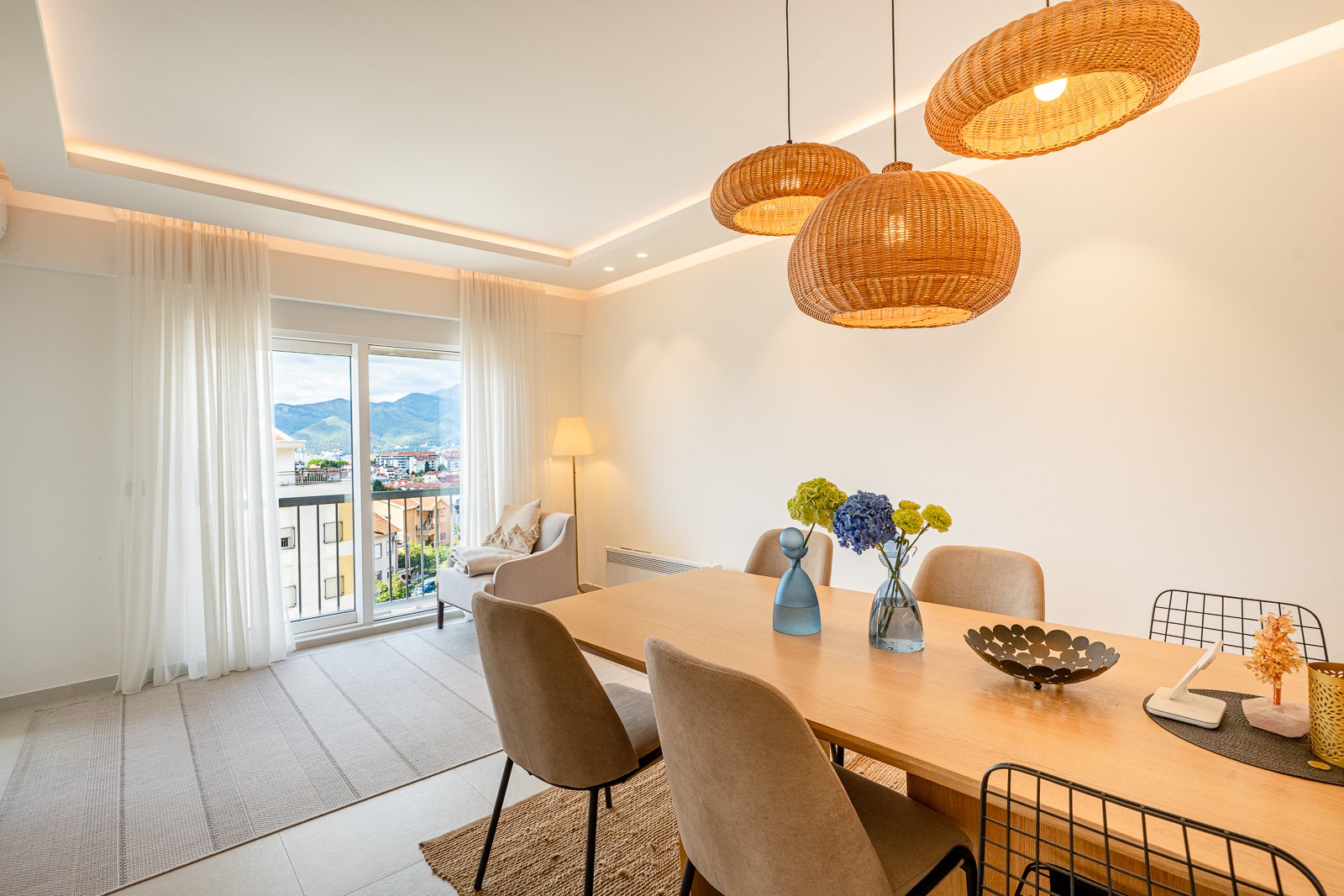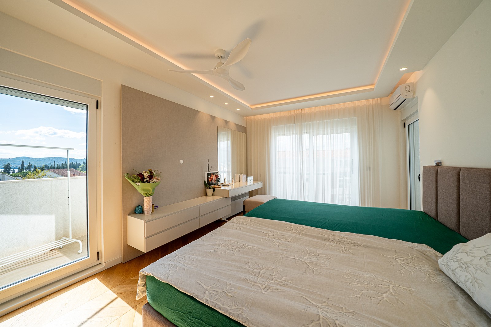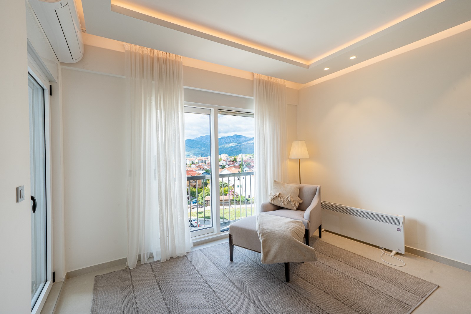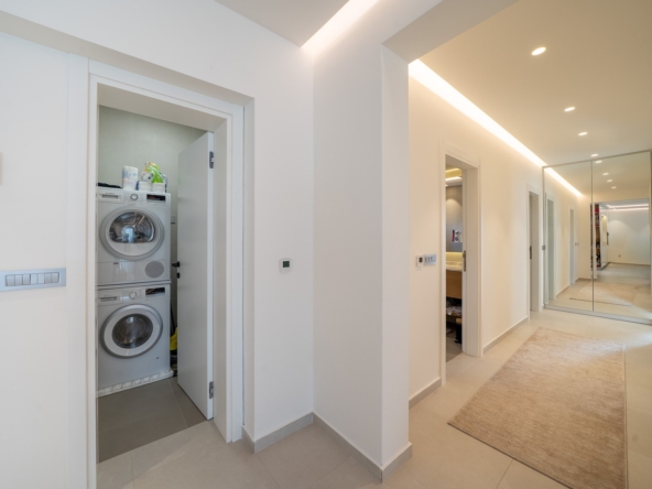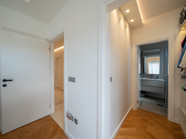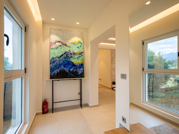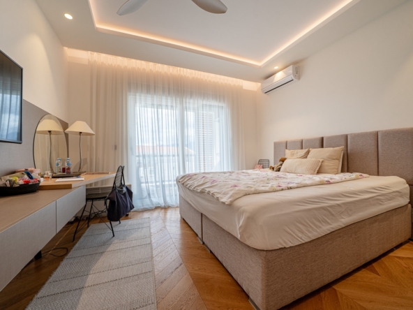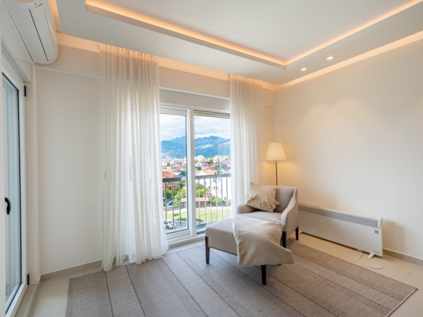 Spacious 2-Bedroom Apartment in the Heart of Tivat.A bright and fully furnished two-bedroom apartment located in a modern building in a quiet residential area of central Tivat. Offering 122 m of living space on the 3rd floor of a 4-story building, this apartment combines comfort, functionality, and a family-friendly layout.The apartment features a spacious and airy living room with an open-plan kitchen, seamlessly connected to a terrace, creating a cozy space for relaxation and entertainment. There are two large bedrooms, each with a walk-in closet, two bathrooms, a separate utility room, and a generous hallway providing optimal comfort and organization for family life.Key Advantages:Two spacious terraces with panoramic views of the sea and city, perfect for enjoying Tivats coastal atmosphere.Three parking spaces in the underground garage included in the price.Elevator access, secured parking, and professional property management ensure convenience and peace of mind.Quiet green neighborhood, just 15 minutes walk from the city center. Shops, cafes, schools, a green park, and the beach are all within easy reach (approximately 5 minutes walk).With excellent transport links and a serene yet central location, this apartment is ideal for families seeking a balance of space, tranquility, and urban convenience in Tivat. Fully equipped with modern appliances, the property is move-in ready, offering a rare combination of comfort, privacy, and accessibility in one of Montenegros most desirable coastal towns.