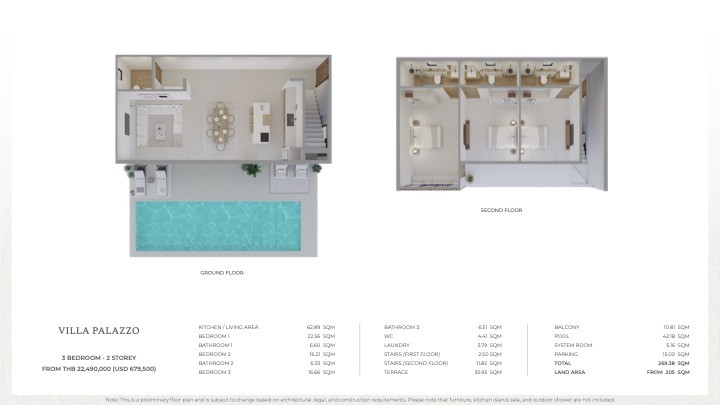 Sunrise Valley offers contemporary luxury villas surrounded by the sun-soaked landscapes of the captivating Phuket island.Fringed by lush foliage, Sunrise Valley is a collection of exclusive private pool villas ranging from 2 to 3 bedrooms.Sunrise Valley benefits from a desirable location, exquisite exterior and interior designs and an impeccablequality assurance – ensuring you an asset of high capitalizable value.2 Bedroom / 1 storey – 118 sqm Prices From: 13,990,000 THB / $423,500 USD3 Bedroom / 1 storey – 175 sqm Prices From: 15,990,000 THB / $484,500 USD3 Bedroom / 2 storey – 269 sqm Prices From: 22,490,000 THB / $674,500 USDFULLY-FITTEDThe villas are delivered fully-fitted with bathrooms, kitchen, sliding windows, doors, floors & plastered white ceiling, lighting, electrical, water system; an air conditioner, and a fan in each bedroom as well as a fan in each shared room.UNFURNISHEDThe villas will come unfurnished, but as a service, we will assist you with the sourcing, selection, acquisition, and installation of everything required to get your villa ready for occupancy.AN OUTSTANDING LOCATIONSunrise Valley is located in the prime area of Cherng Talay, Bang Tao. Only 4.9 km from Bangtao Beach and 6.6 km from Layan Beach, this prime area has many restaurants, golf courses, conveniences, hospitals as well as the famous Catch Beach Club.INVESTMENT SAFETYYou are assured absolute safety when investing in Sunrise Valley. All land and construction payments made can be processed through a lawyer who acts as your escrow.LAND TRANSFEROnce the contract is signed, the first step initiated in the process entails land transfer. You are assured that the land will be transferred to you quite early on in the acquisition stages of the property.GUARANTEED BUILD TIMECompletion is guaranteed within 12 to 14 months from the start of construction, subject to specific conditions such as the inclusion of furniture or customizations.FULL SERVICE PROPERTY MANAGEMENTAfter investing in Sunrise Valley, you are guaranteed expert full-service Property Management Services. From Villa Maintenance, Housekeeping, Security, Guest Management, to Villa Marketing, every single detail is taken care of smoothly in your absence.HIGH RENTAL INCOMEBenefiting from close proximity to the beach and various lifestyle attractions, Sunrise Valley villas are sure to appeal to vacationers – promising you a high occupancy rate and in turn, a high annual rental income.EASY – SELL OPTIONA highly lucrative easy-sell solution is offered to you when you are ready to sell your villa. The commission rate charged is only half of the average commission rate of local agencies, enabling you to benefit from higher gains as you get to keep more of your earned profits.DISTANCES700m               Mini Mart1.3km              Live More Lifestyle Clinic1.3km              Courtside Cafe1.3km              SiamSportsPro Tennis Academy2.4 km             Tesco Lotus Express2.9km              Porto de Phuket & Boat Avenue (Restaurants, Shopping)SCHOOLSPhuket has many international schools with world-class standards and curriculum. Tuition in Phuket schools ranges between THB 240,000 to THB 815,000 per year, that isapproximately USD $7,000 to USD $24,000 per year.HeadStart International School: 4.8 km awayUWC Thailand International School:9.8 km awayBritish International School: 14.8 km awaySHOPPINGPhuket has numerous upscale shopping malls providing a vast range of products andservices.Tesco Lotus and Villa Market are two of the best supermarkets on the island offering a range of household essentials, within 2-4 km distance from Sunrise Valley.Located less than 3 km from Sunrise Valley are two huge open-air malls – Boat Avenue & Porto De Phuket, both with a supermarket and a wide range of restaurants, boutiques and personal care shops.The popular Central Festival and Central Floresta Malls in Phuket offer a comprehensive lifestyle shopping experience with over 200 shops showcasing a variety of world-class brands, bars, restaurants, and other recreational options.Local Markets for Fresh Produce:There is no shortage of local produce stands in the area, you will be able to find quite a few before you reach the main road, however the closest convenience store is merely 700 m away and closest local market Cherng Talay Market is only 4 km away.MEDICAL & HEALTHPhuket offers world-class standards of m