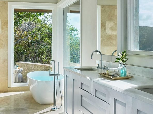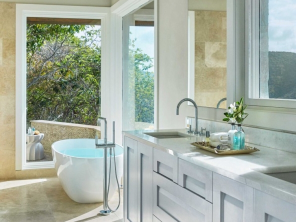 Nestled in a lush oasis with a gentle slope, this exquisite 4-bedroom Caribbean home offers breathtaking views of the prestigious Eustatia Sound and neighboring Necker Island. The epitome of luxury, this exclusive island retreat is perfect for those seeking an escape from the ordinary. Designed in a pod-style layout, Reef House Estate provides ultimate privacy with four separate king suites, each boasting opulent bathrooms and balconies. Indulge in the tranquility of this idyllic haven, where every detail has been meticulously crafted for your utmost comfort and enjoyment.Experience luxury living at its finest in this stunning 4-bedroom Caribbean villa. The focal point of this exceptional property is the expansive great room, boasting floor-to-ceiling glass windows and doors. Step outside to discover a captivating infinity lap pool, offering breathtaking views of the sapphire seas and endless skies. With ample space for outdoor dining, lounging, and entertaining, the possibilities are endless.Indulge your culinary desires in the fully-loaded gourmet kitchen, while the separate media room with a bathroom and sleeper couch provides the perfect space for relaxation. By day, witness the bustling activity of boats in the marina below, and by night, marvel at the blanket of sparkling stars above.This outstanding property is a haven for multi-generational living offering a seamless blend of elegance and comfort.As a homeowner in Oil Nut Bay, owners have the option to retain exclusive use of their home or participate in the comprehensive Rental Management Program. This program allows owners to share the Oil Nut Bay experience with others while also offsetting their investment.