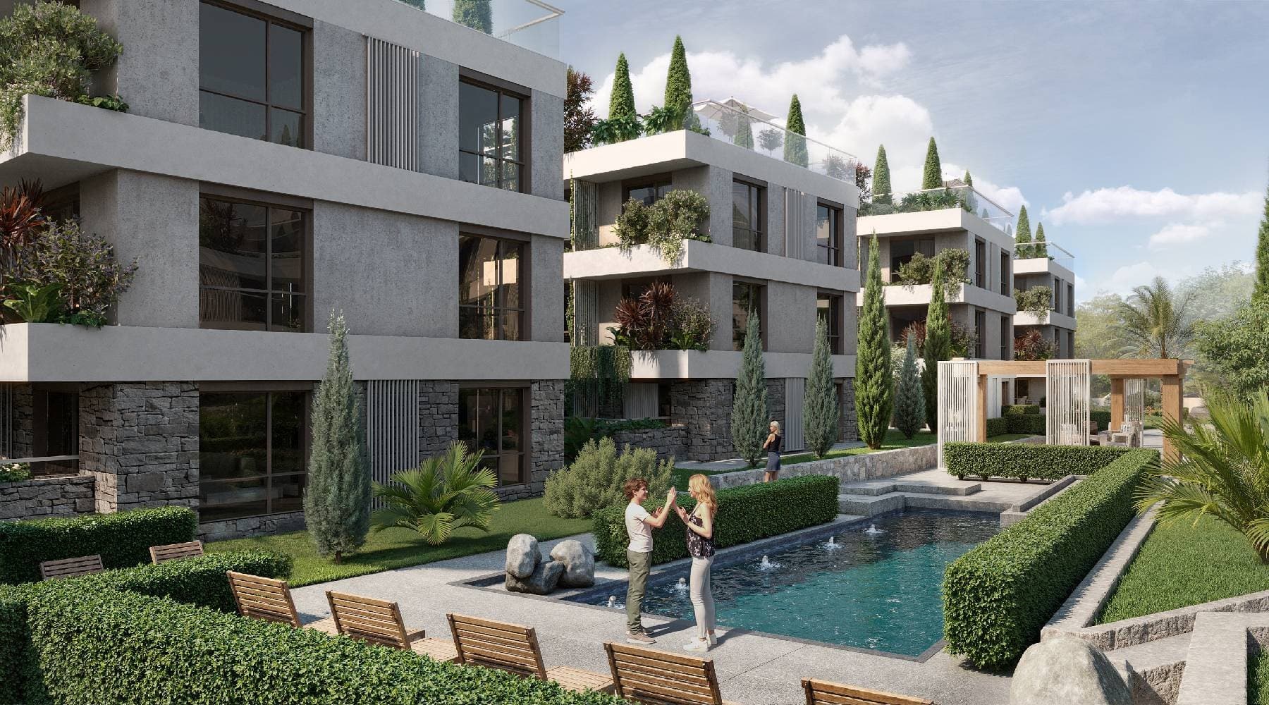 Located in the heart of Tivat, this modern two-bedroom apartment combines central urban living with private outdoor space. Situated in a newly built residential complex across from a green park and within walking distance of the beaches, it is perfect for those seeking comfort, privacy, and a premium lifestyle.The apartment features a functional layout: a welcoming hallway with storage, a bright open-plan kitchen and living area with dining and lounge zones, two separate bedrooms, and two bathrooms. A standout feature is the private courtyard terrace, ideal for outdoor dining, relaxation, or creating a green retreat in the city center.Finished with high-quality materials and modern design, large windows fill the interior with natural light, creating a warm and airy atmosphere. Despite its central location, the apartment offers peace and seclusion, with all amenities just a short walk away.The complex offers extensive infrastructure: swimming pool with sun loungers, childrens and sports playgrounds, outdoor workout area, barbecue zones, landscaped gardens, and an open-air community lounge. Underground and guest parking are available, and the gated territory is secured with video surveillance.Installment payment plans are available. This apartment with a private courtyard is an excellent choice for comfortable living or investment, combining city convenience with Mediterranean charm.