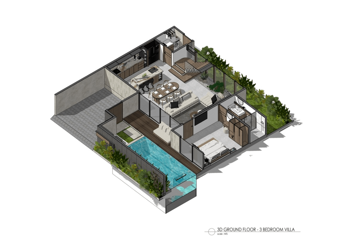 Offers a chillout outdoor area, each villa offers a spacious terrace, delivered with high-end finishing and fully equipped, including air conditioning, washer-dryer, smart TV, stable wi-fi and many more.