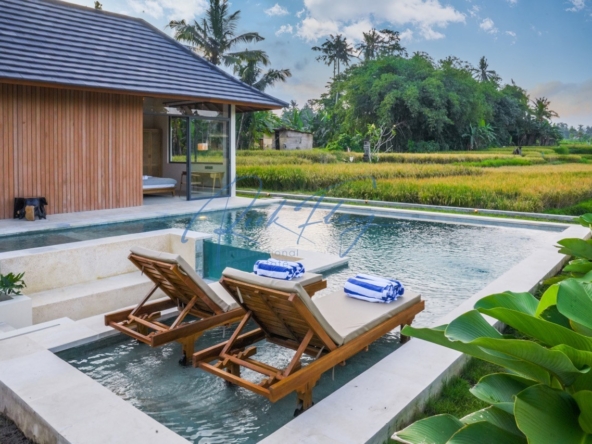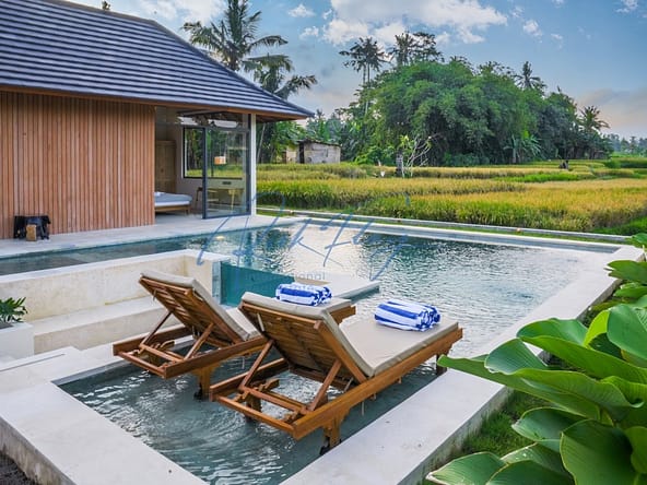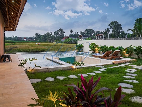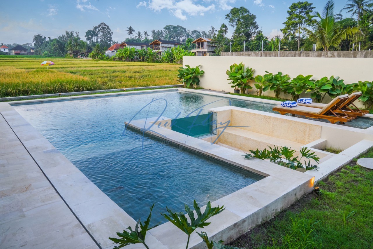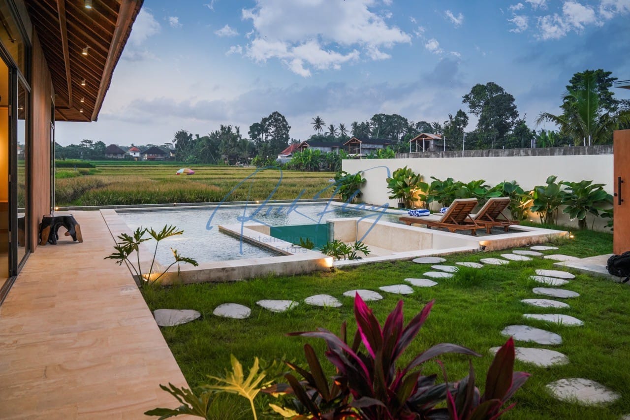 A spacious villa with a large swimming pool and a plot of land with stunning views of the rice paddies. High ceilings, separation of common areas and bedrooms in different buildings, large green areas, swimming pool and lounge area all create a sense of comfort and coziness for the owners and guests of the villa.Natural stone finishes, premium wood furnishings, stunning views of the rice terraces.Villa SpecificsTotal land area: 339 – 1189 m2Total living area: 177 – 194 m2Number of bedrooms: 3Number of bathrooms: 4Pool size: 32 – 67 m2Terrace: 33 – 52 m2Lounge area: 11 m2Parking: 1 car and 2 motorbikesRice Field Views from the houseLocationThe villas are located in the beautiful green area of Ubud, 15 minutes from the center of Ubud, close to the Parq Family complex which has everything you need from coffee shops to gyms and co-working spaces, 5 minutes from international schools such as Wood School, Montessori School and Empathy School. This is an ideal location for both short and long term rentals for families with children.Close to:Palaces and templesMuseumsWaterfallsRice terracesMonkey forestBird parkOccupancy Rates c 90%ROI 11-15%Estimated payback period approx 7 yearsDeveloper has no debt using his own money to buildWarranty on structural elements – foundations, floors, roof, water and electricity systems – 3 yearsOn finishing – 1 year.Leasehold 30 years plus extension for 25 years