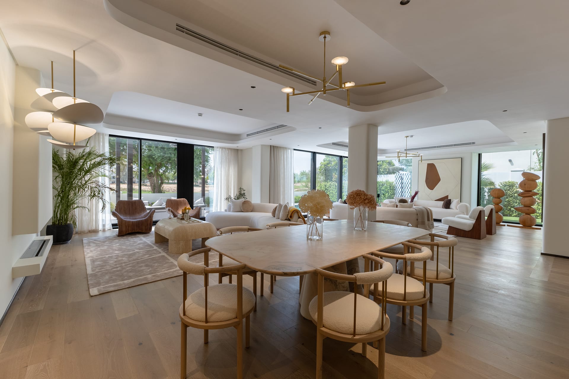 Fairway Homes are pleased to present his fully renovated 5-bedroom home in Sienna Views. This property has been transformed by designer Liu Luxxe, blending contemporary elegance with thoughtful functionality. Every detail has been carefully curated to create a turnkey residence ready to move straight into.Key Features:Bedrooms: 5Live-in Accommodation: MaidsBuilt up Area: 9,100 sqftProperty Plot: 8,700 sqftView: Golf Course ViewThe property opens into expansive open-plan living spaces, where natural light enhances the seamless flow between lounge, dining, and kitchen areas. High-end finishes and bespoke design elements highlight Liu Luxxes signature style, balancing comfort with sophistication.The master suite is a true retreat, complete with the most luxurious large walk-in closet and serene views across the golf course. Upstairs also features a private gym for wellness at home, while the ground floor includes a dedicated cinema and entertainment roomperfect for family time or hosting friends.Outdoors, landscaped gardens, a private pool and generous terraces extend the living space, ideal for entertaining or unwinding in a tranquil setting.For more details about this home, kindly reach out to the listing agent who will be more than happy to assist.Please note all measurements and information are given to the best of our knowledge. The listing agent and/or brokerage accept no liability for any incorrect details.