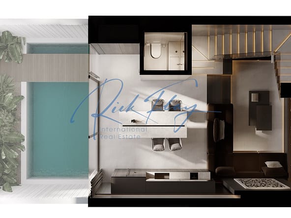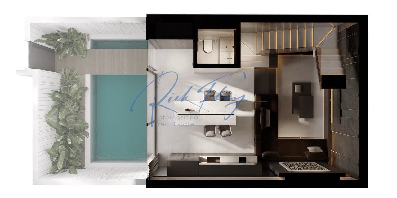 Located just 10 minutes from Melasti Beach, offering a golf cart transfer service for residents between the complex and the beach. All units are delivered fully finished and equipped, featuring a modern, minimalistic design with high-quality materials and built-in smart home technologies.