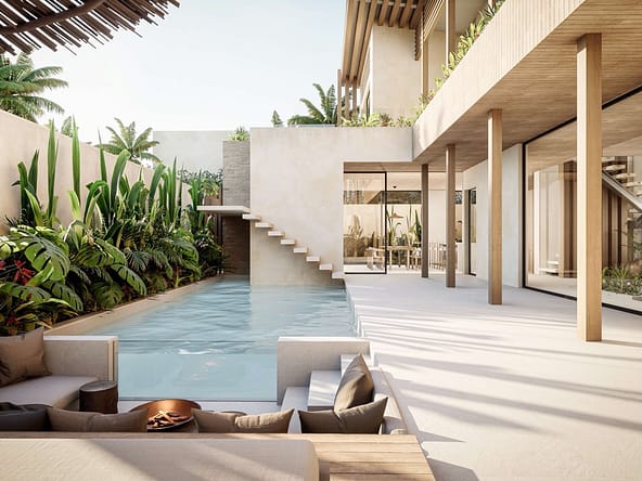Designed for those who appreciate the finer things in life, these residences seamlessly connect you to Bali’s bustling nightlife and world-class dining, all while providing a peaceful retreat. The centerpiece of the property is a 12.5-meter lap swimming pool, offering a refreshing space for both exercise and relaxation amidst lush tropical surroundings.