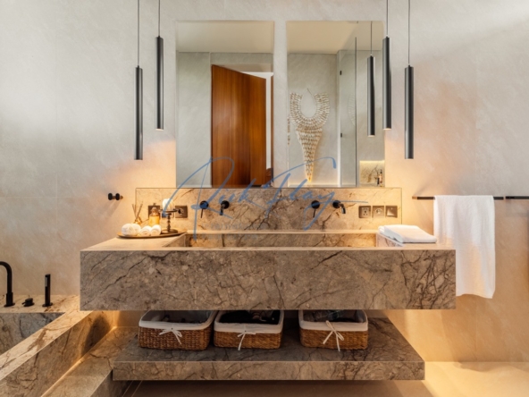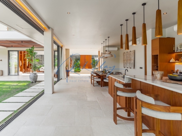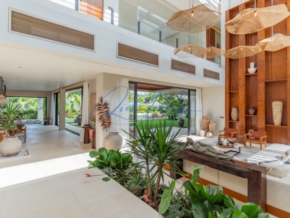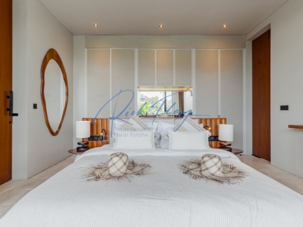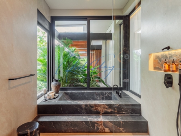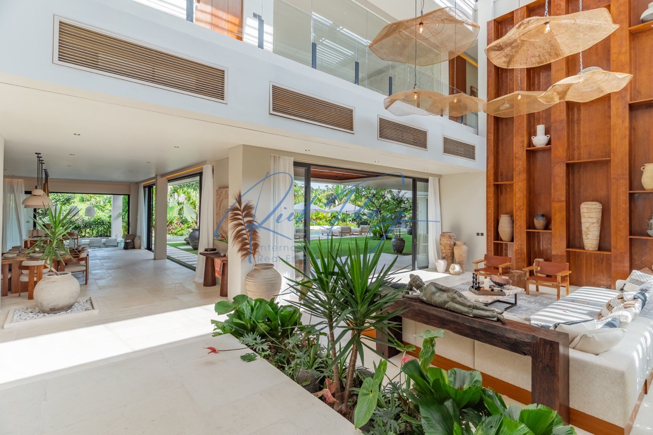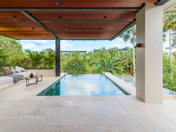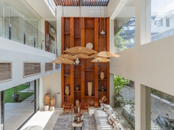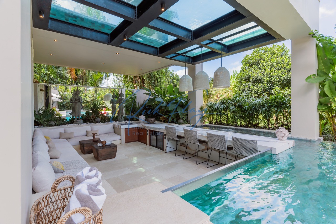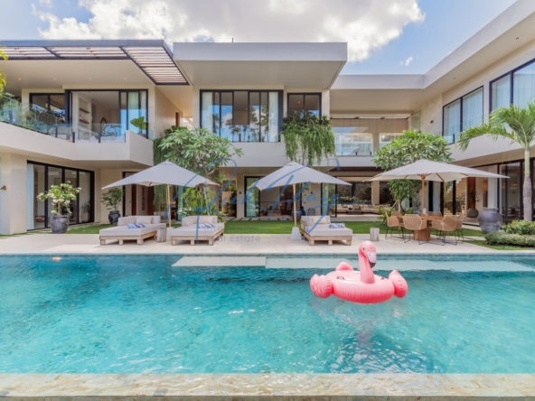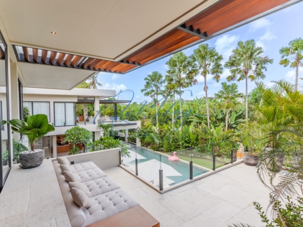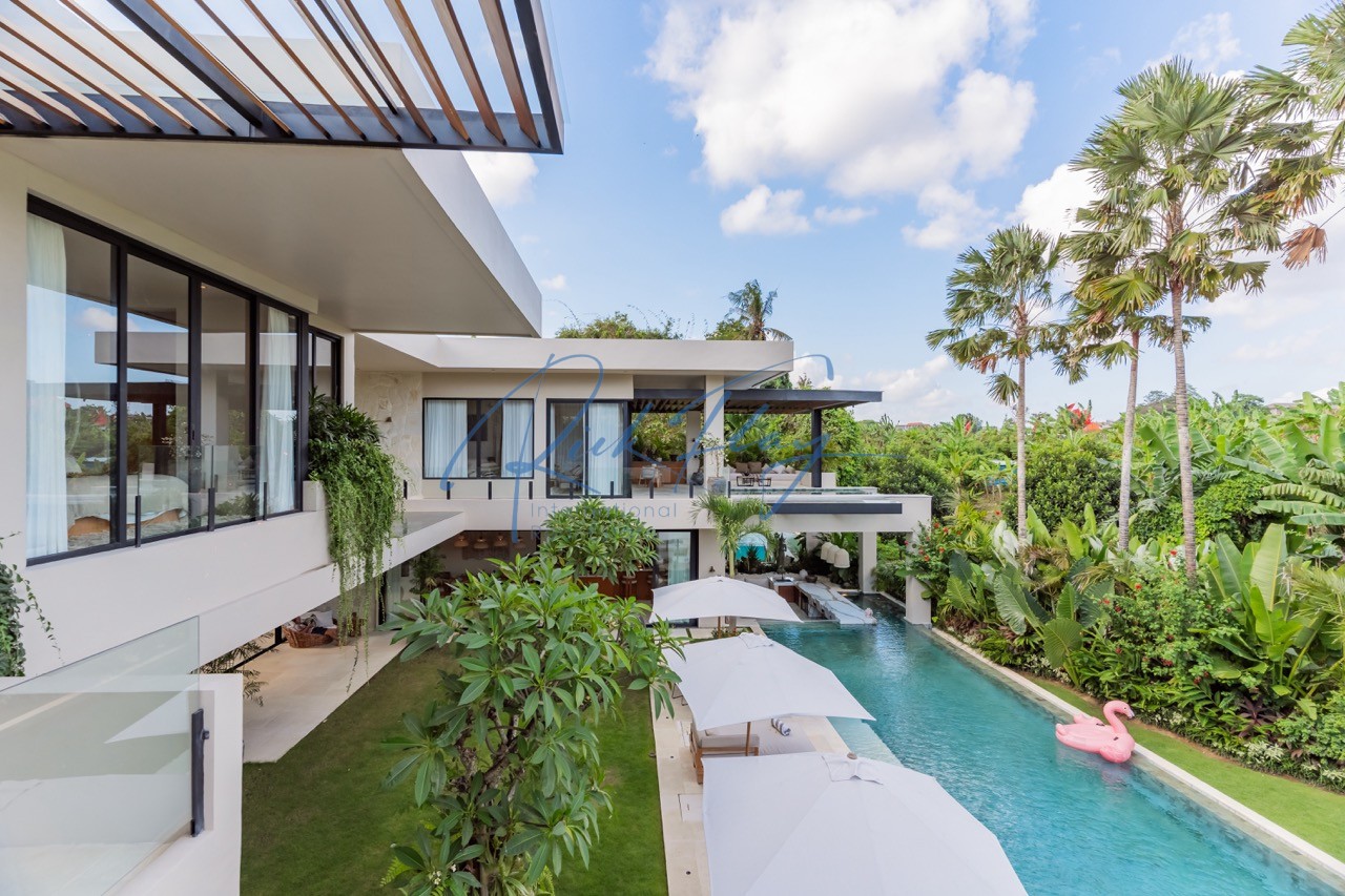 Tucked away in the serene enclave of Tumbak Bayuh, North Canggu, Villa Adorama is a masterpiece of contemporary tropical living. Surrounded by lush greenery and set in front of a tranquil river, this extraordinary six-bedroom residence is just 10 minutes from Bali’s world-class beaches, vibrant dining scene, and top international schools, offering the perfect balance of seclusion and accessibility.A Grand Estate of Space & EleganceSet on an expansive 1,292 sqm leasehold (plus 464.5 sqm of shared access & security areas), Villa Adorama boasts an impressive 783 sqm of living space. Designed for both privacy and social gatherings, the property is centred around a 33.5-meter swimming pool with a glass-bottomed plunge pool above, creating a striking visual feature that enhances the villa’s modern aesthetic.Seamless Indoor-Outdoor LivingUpon entering, guests are greeted by a double-height living area crowned with a 7.2-meter handcrafted wooden shelf installation—a true piece of local artistry. The open-concept kitchen and dining area seamlessly extend to the pool deck through grand sliding doors, offering a western-style cooking experience equipped with high-end appliances. A discreet staff kitchen, storage, and laundry area ensure seamless service without intrusion.A Tropical Oasis of Leisure & Entertainment• Pool Bar Lounge & Swim-Up Seating – Enjoy refreshing drinks without leaving the water, thanks to a built-in water bar with a breathtaking view of the pool’s glass wall.• Sunken Fire Pit Lounge – Nestled in the garden, this cozy gathering spot is perfect for sunset conversations, creating a warm and intimate ambiance amidst lush tropical surroundings.• Media Room Retreat – A dedicated entertainment hub featuring an 80-inch screen, plush curved sofa, and black out curtains for an immersive cinematic experience.Exquisite Bedroom Suites for Comfort & PrivacyMaster Suite – A spacious private retreat with a lounge area, walk-in closet, spa-inspired bathroom, and direct access to a private terrace with a bar and glass-bottom plunge pool.Queen Suite – A sanctuary of elegance with a large private terrace, built-in wardrobes, and an ensuite bathroom surrounded by lush greenery.Panorama Suite – Floor-to-ceiling windows offer breathtaking views of the pool area, complemented by an ensuite bathroom and ample wardrobe space.Ground Floor Guest Suites – Two generously sized bedrooms with garden and pool views, perfect for hosting guests in privacy and comfort.Recreation Room (Optional 6th Bedroom) – A 50 sqm multi-purpose space designed for yoga, workouts, massages, or a home office setup, complete with an ensuite bathroom and outdoor shower.Modern Conveniences & SecurityVilla Adorama is designed for effortless living, featuring high-speed mesh WiFi, CCTV surveillance, and a dedicated security post shared with three neighbouring villas. A covered parking area ensures protection for vehicles and scooters.With a leasehold until 1 October 2051 (extendable by 18 years at market rate), Villa Adorama offers an unparalleled opportunity to own a one-of-a-kind architectural masterpiece in Bali’s most sought-after residential area.