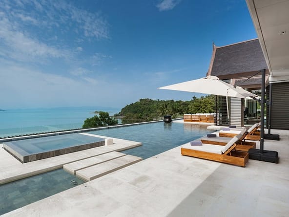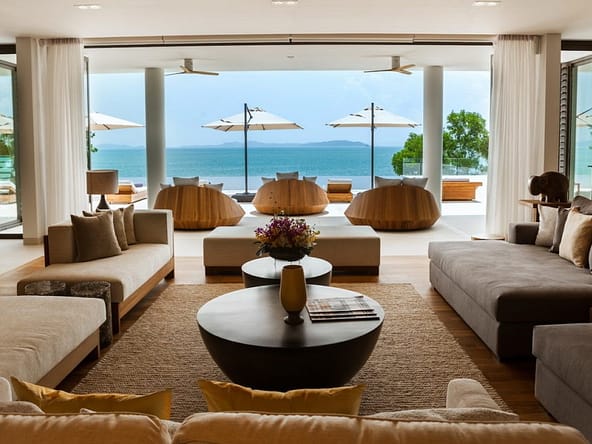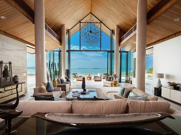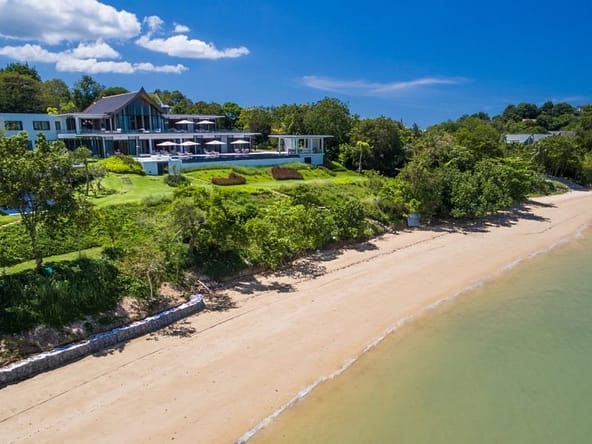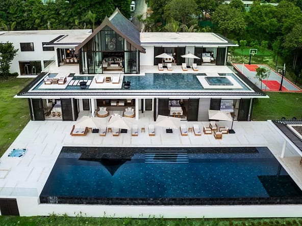 Introducing Villa Amarapura, an extraordinary 7-bedroom beachfront estate located in the exclusive Cape Yamu enclave on Phukets east coast. Set on a vast 7,300 sqm plot with direct access to a tranquil sandy bay, this 2,650 sqm residence blends striking contemporary design with refined tropical elegance.The villa features two master suites and five spacious guest bedrooms, each with luxurious en-suite bathrooms and views of either lush gardens or the Andaman Sea. Vaulted ceilings, bespoke timber accents, and full-height glass walls flood the interiors with natural light and open onto expansive terraces.Central to the home is a grand open-plan living and dining area with floor-to-ceiling windows overlooking a 25-meter infinity pool, twin Jacuzzis, and panoramic views across Phang Nga Bay. Multiple outdoor lounging and dining areas, a BBQ pavilion, and landscaped gardens create a seamless indoor-outdoor lifestyle.Villa Amarapura is a self-contained luxury retreat, offering a private cinema, gym, entertainment room with golf simulator and pool table, plus a tennis court, basketball/badminton court, putting green, and beachfront access with kayaks and paddleboards.A fully equipped Western and Thai kitchen, full-time staff including a private chef, and smart home technology ensure complete comfort. The property includes garage parking for four cars and is within a secure, gated community.Available on leasehold, this exceptional villa is ideal for use as a private residence, high-end holiday rental, or legacy asset. Viewings are by appointment only.