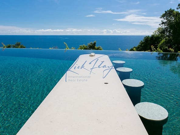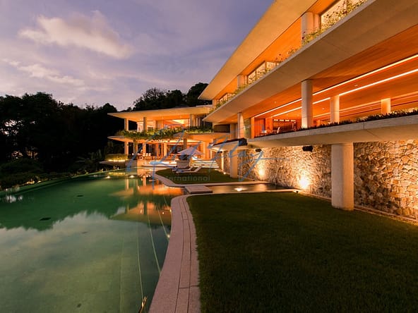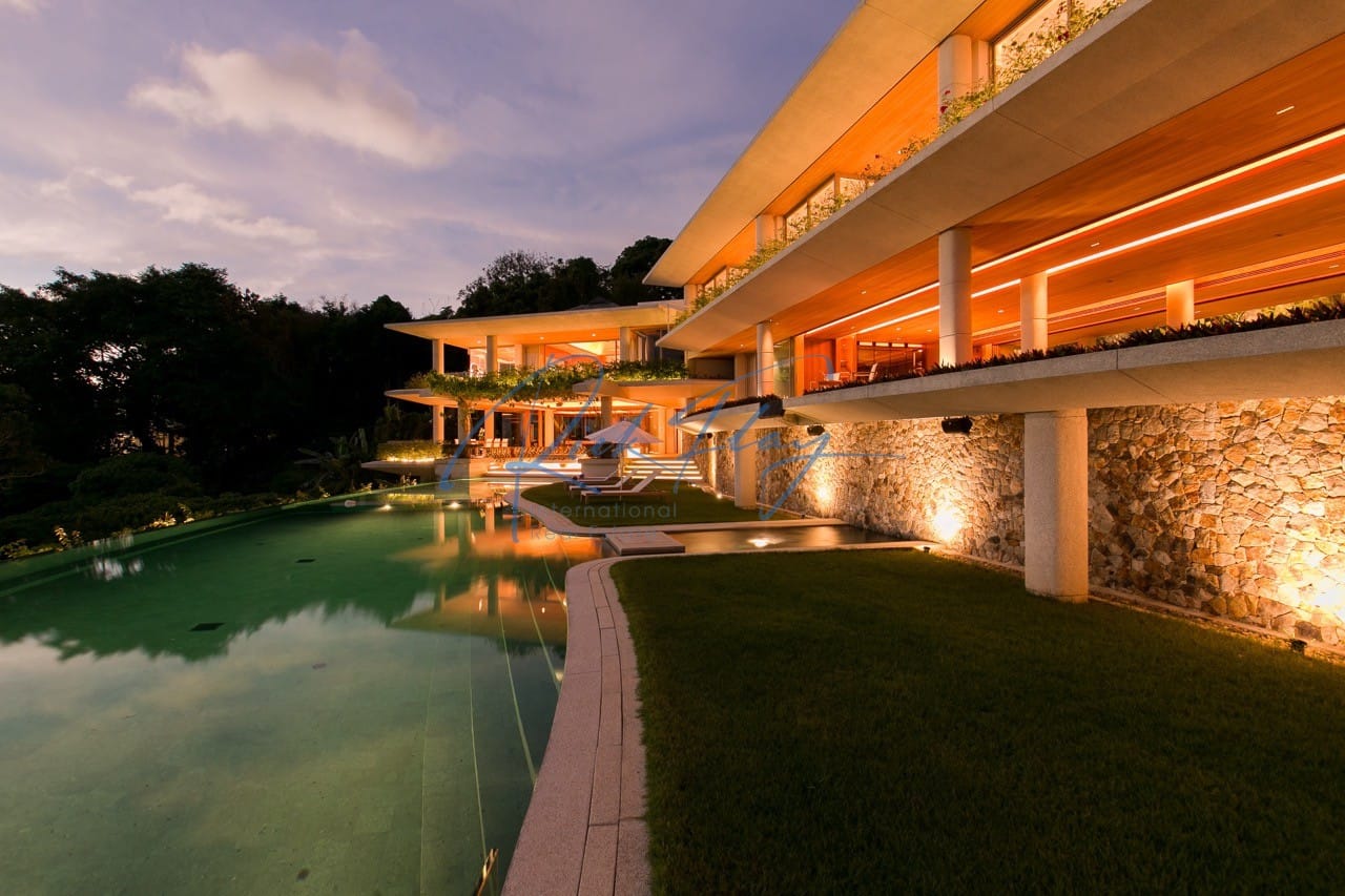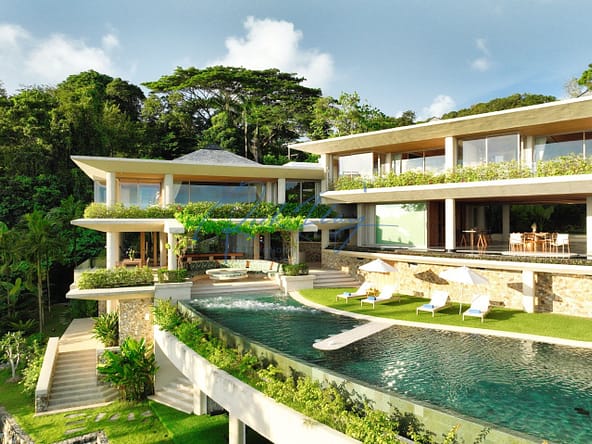 Features Sunset Sea Views5 Bedrooms2,500 sqm Built Area 3,404 Sqm Land Terraced Lawns Gardens25 x 8m Swimming Pool Fitness Room Full Cinema/Media Room Full Spa Room Completed 2023Unique & Custom Villa Next to Waterfall Full Estate SecurityBackup Electric Generator NS3K TitleThai FreeholdUSD $14,900,000Introducing Villa DescentNestled within the exclusive confines of a gated community with 24-hour estate security, Villa Descent stands as a testament to sophistication yet casual elegance. This architectural masterpiece spans a vast sea-view land plot of 3,404 sqm, offering an unparalleled living experience that seamlessly blends lavish comforts with breathtaking natural surroundings. The villa is beside a year-round waterfall/ cascade from which the villa derives its name and a pathway beside the waterfall leads down to the ocean cove from where one can swim, snorkel and dive.Exquisite Design and Unmatched LuxuryThe villa boasts a total covered area of 1,800 sqm, with an additional 700 sqm of uncovered space. The living dining and main kitchen span the length of the main living area which has retractable, sliding floor-to-ceiling height doors on both the seaside and the rear rock garden sides of the villa, allowing a very natural ambiance throughout the property. Five sumptuous bedrooms, including a palatial master bedroom with an attached office, provide an intimate retreat for residents. Immerse yourself in the lap of luxury with ensuite bathrooms, custom-made oversized bathtubs, and impeccable design throughout.Indulge in Endless LeisureUnwind in style with a 25m x 8m jetted infinity pool with a swim-up bar, children’s area overlooking the picturesque landscape, complemented by extensive outdoor terracing that affords sweeping ocean views. The villa's terraced lawn area, positioned next to a cascading waterfall, creates an enchanting atmosphere of tranquility. The villa has two fully equipped fitness rooms, one prioritizing aerobic and dance and the second housing an extensive array of top-quality fitness machines. A full-featured spa, a cinema and media room, and the dedicated studio and private relaxation terrace.Gourmet Delights and Culinary ExcellenceVilla Descent boasts a fully equipped, professional-level, Western show kitchen, where culinary aspirations come to life. Immerse yourself in the art of gastronomy with top-of-the-line Italian commercial kitchen appliances and bespoke teak furniture. The poolside covered seating area provides the perfect setting for al fresco dining under the stars.Unparalleled Craftsmanship and Imported Elegance Step into a world of refined aesthetics with teak adorning floors, ceilings, walls, and furniture. Imported stone from Brazil and Italy, as well as coral stone from the USA, elevate the villa's grandeur. Spanish fabrics and Thai silk add a touch of international flair, while Cocoon brand taps and faucets imported from Italy showcase an unwavering commitment to quality.Smart Living, Unrivalled ComfortExperience the pinnacle of modern living with high-speed wireless Internet throughout the villa and Japanese electric toilets for the utmost convenience. A stand-alone studio adds versatility to the property, providing a space for personal projects or creative endeavours.Secure and ExclusiveYour peace of mind is paramount with a dedicated gate entrance ensuring privacy. The garage for three cars adds a practical touch to this haven of extravagance.Indulge in the epitome of refined living at Villa Descent – where every detail is a testament to unparalleled luxury and sophistication. Your dream home awaits in this meticulously crafted sanctuary.Viewings are strictly by appointment only.