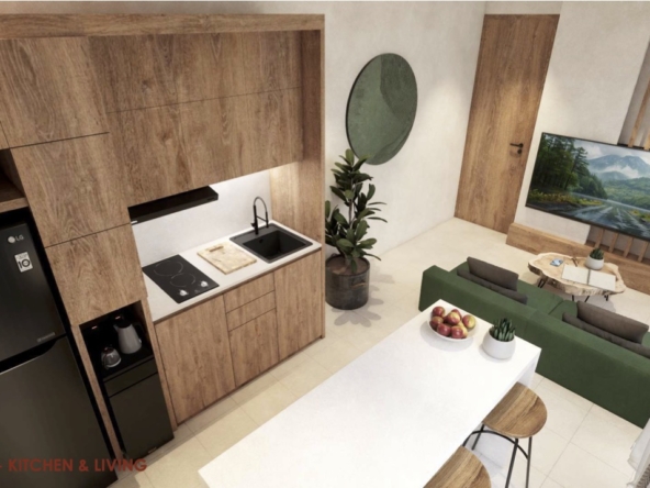 Fully equipped open kitchen and dining area