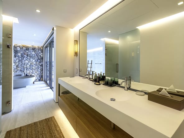 Discover the essence of minimalism and elegance at Cape Yamu, on Phukets serene eastern coast. Overlooking the Andaman Sea and surrounded by lush tropical scenery, this villa is a private sanctuary where refined design meets natural beauty.The interiors embody sophisticated simplicitywarm tones, open spaces, and understated luxurycreating an inviting retreat for families and groups alike. Entertainment is effortless with a dedicated TV lounge featuring board games, foosball, and card tables.Culinary moments are elevated in the fully equipped American kitchen or at the stylish terrace-side BBQ pavilion, perfect for gatherings. Wellness takes center stage with a private gym, sauna, and steam room, while expansive terraces and a beachfront infinity pool offer panoramic sea views and total relaxation.For adventure, explore the coastline by kayak or arrange on-demand jet ski rentals. Modern comforts include an integrated sound system, Toto Intelligent toilets, high-speed internet, and other smart features designed for seamless living.Security and convenience are assured with parking for three cars within a gated community offering 24-hour estate protection.Key Features & AmenitiesInfinity swimming pool with sea viewsFully equipped kitchen + BBQ pavilionSpa, sauna, steam room & gymEntertainment lounge with games & foosballOutdoor dining and expansive terracesKayak & jet ski accessHigh-speed WiFi & integrated sound systemGated community with 24-hour securityA true balance of contemporary elegance, tranquility, and coastal adventurethis Cape Yamu villa redefines luxury living in Phuket.