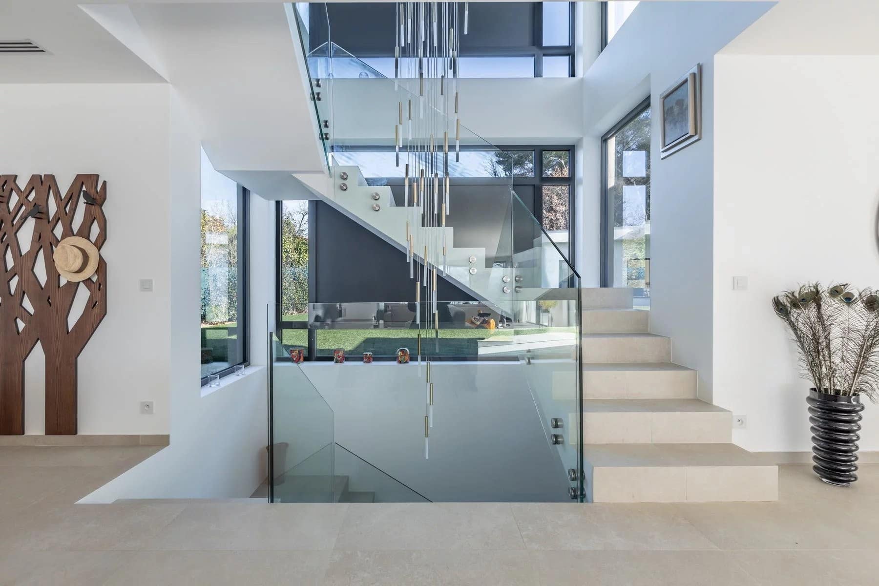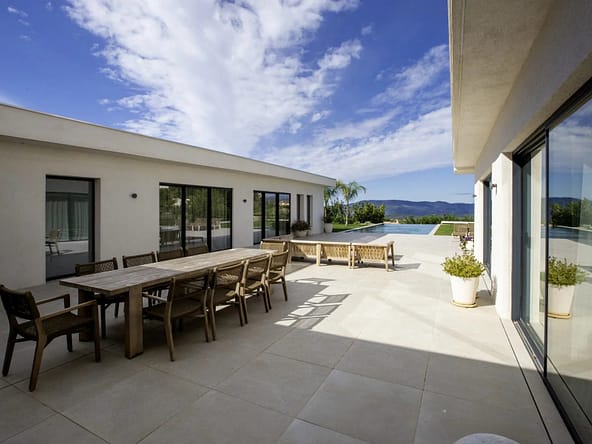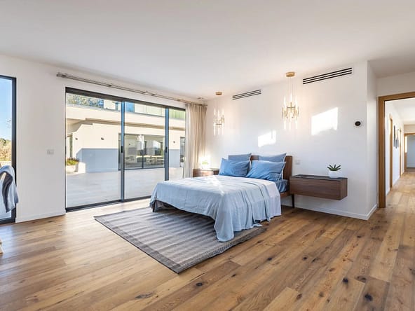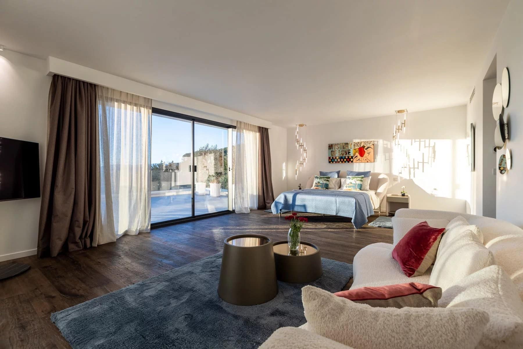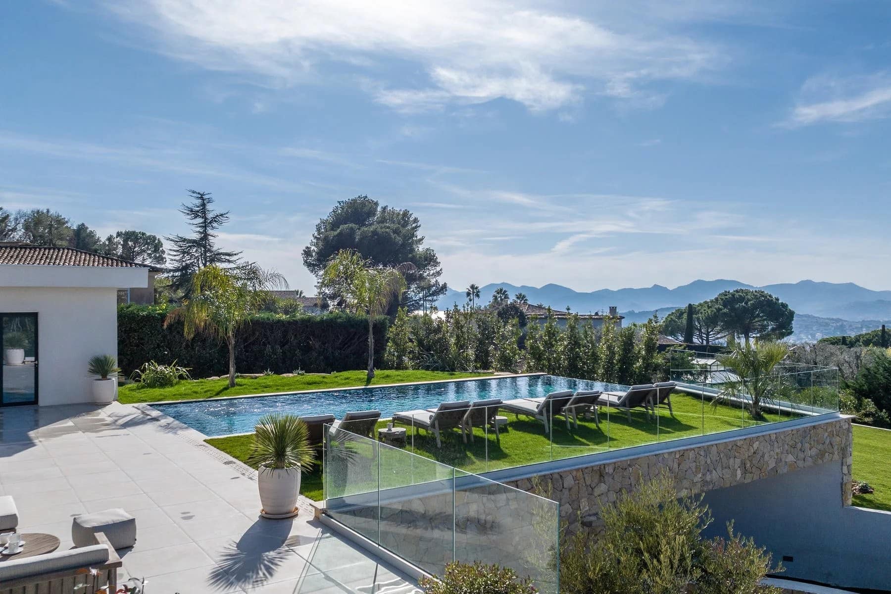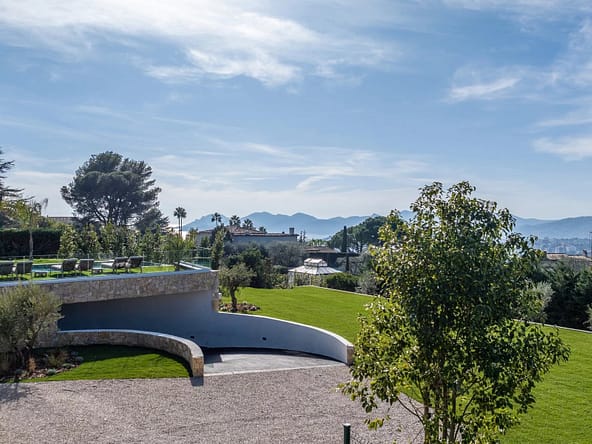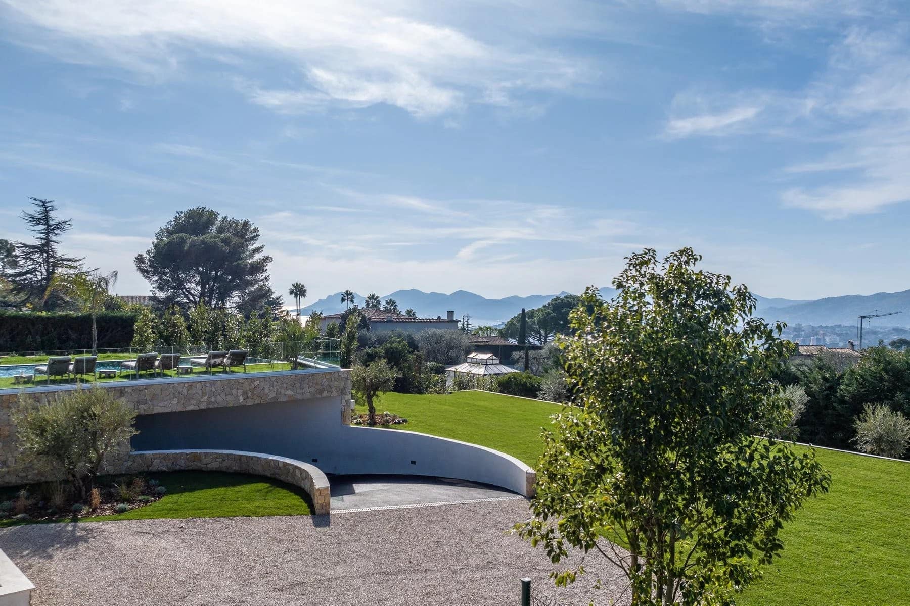 Perched on one of the most exclusive hilltops of Cannes, this newly completed contemporary estate enjoys a rare dominant position overlooking the Bay of Cannes, with a subtle sea glimpse and sweeping views towards the Esterel. Bathed in sunlight thanks to its south-west orientation and entirely free from overlooking, the property offers absolute privacy in a spectacular setting.Delivered in 2024, this exceptional California-style residence stands out for its striking architecture, generous volumes and remarkable natural light. Designed with uncompromising attention to detail, it combines cutting-edge contemporary lines with luxurious finishes throughout.The estate is composed of a main villa and an independent guest house, offering both grandeur and flexibility. The main residence unfolds over more than 800 sqm and is organized around two elegant wings opening onto a central patio and an infinity swimming pool, creating a seamless indoor-outdoor lifestyle.On the main level, an impressive triple reception area of approximately 160 sqm sets the tone, opening onto terraces and the pool. A high-end Snaidero kitchen with central island extends into a refined dining space, ideal for entertaining. Four en-suite bedrooms, each with its own bathroom, complete this level with comfort and discretion.The upper floor is entirely dedicated to a sumptuous master suite, featuring a private terrace, a spacious dressing room and an elegant bathroom, all designed to enjoy the views and tranquility of the surroundings.On the lower level, the property reveals a true private wellness and leisure universe, including a billiard room, massage room, fully equipped gym, pantry, laundry facilities and technical rooms, all complemented by a state-of-the-art video surveillance system.A vast covered garage of approximately 250 sqm offers exceptional capacity, perfectly suited for a prestigious car collection.The landscaped garden and infinity pool complete this rare offering, while the independent guest house provides additional accommodation with a living room, kitchen and a bedroom with shower room. Ideal for hosting guests or staff in complete privacy.Price : 7 550 000 €