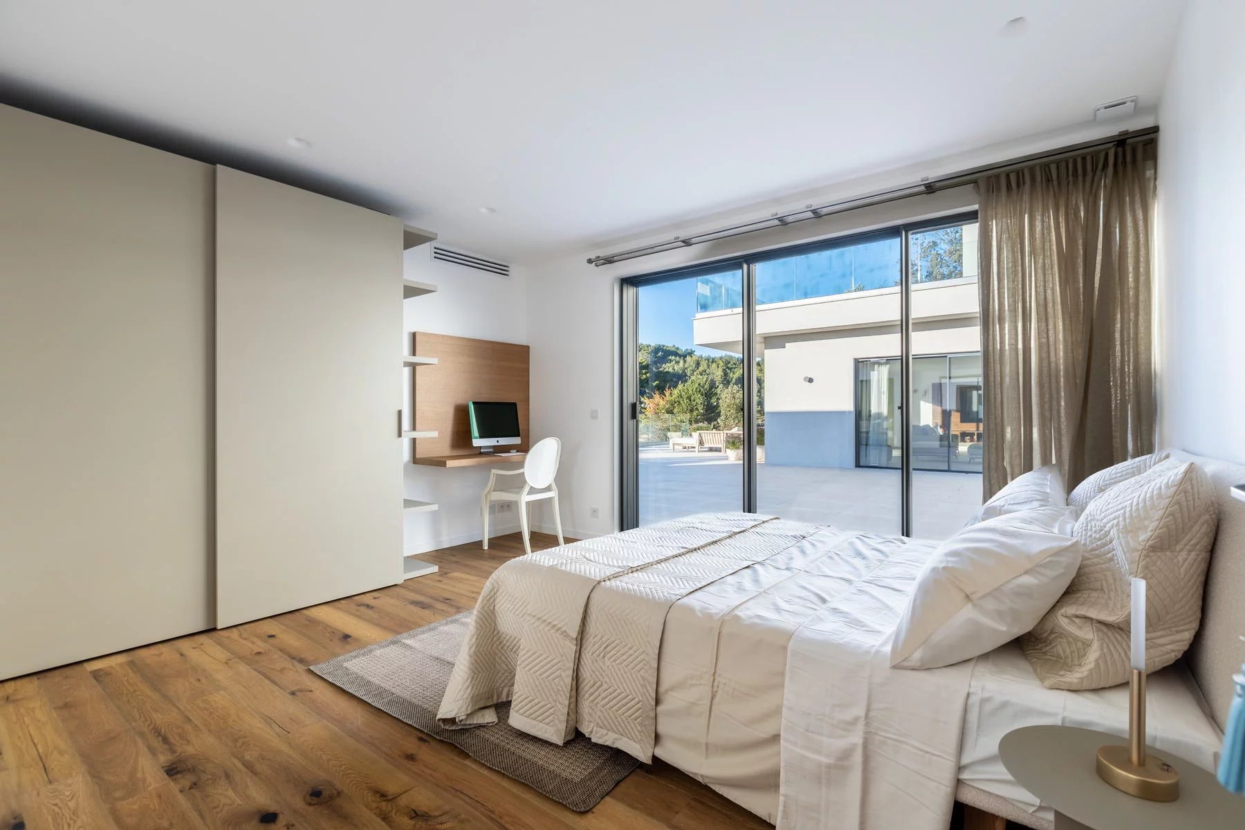 Perched on one of the most exclusive hilltops of Cannes, this newly completed contemporary estate enjoys a rare dominant position overlooking the Bay of Cannes, with a subtle sea glimpse and sweeping views towards the Esterel. Bathed in sunlight thanks to its south-west orientation and entirely free from overlooking, the property offers absolute privacy in a spectacular setting.