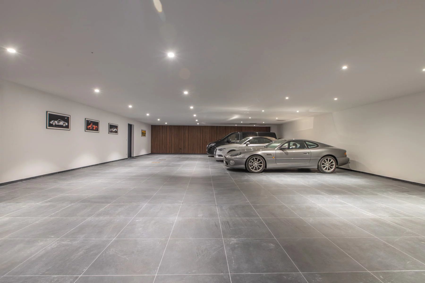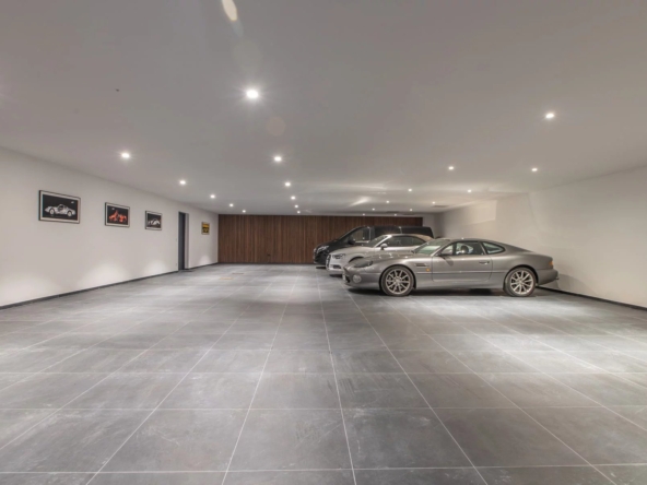 A vast covered garage of approximately 250 sqm offers exceptional capacity, perfectly suited for a prestigious car collection.