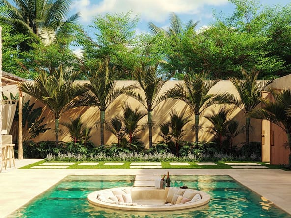 Tropical villa in Mexican style.This villa has been designed with current trends and buyer preferences in mind: minimalism, natural materials, and warm tones create a stylish and sought-after living space.Fully furnished—everything from furniture to finishing touches is taken care of.Leasehold 30 years + 20 year extension Features PoolGarden2 minutes to new Fitness Centre KamanaFree car with purchaseROI Estimated ROI is 10%Location Ungasan is a serene and upscale village located on the southern tip of Bali, Indonesia, within the Bukit Peninsula. Known for its cliffside views, luxurious resorts, and peaceful atmosphere, Ungasan offers a more tranquil experience compared to the bustling areas of Kuta or Seminyak.