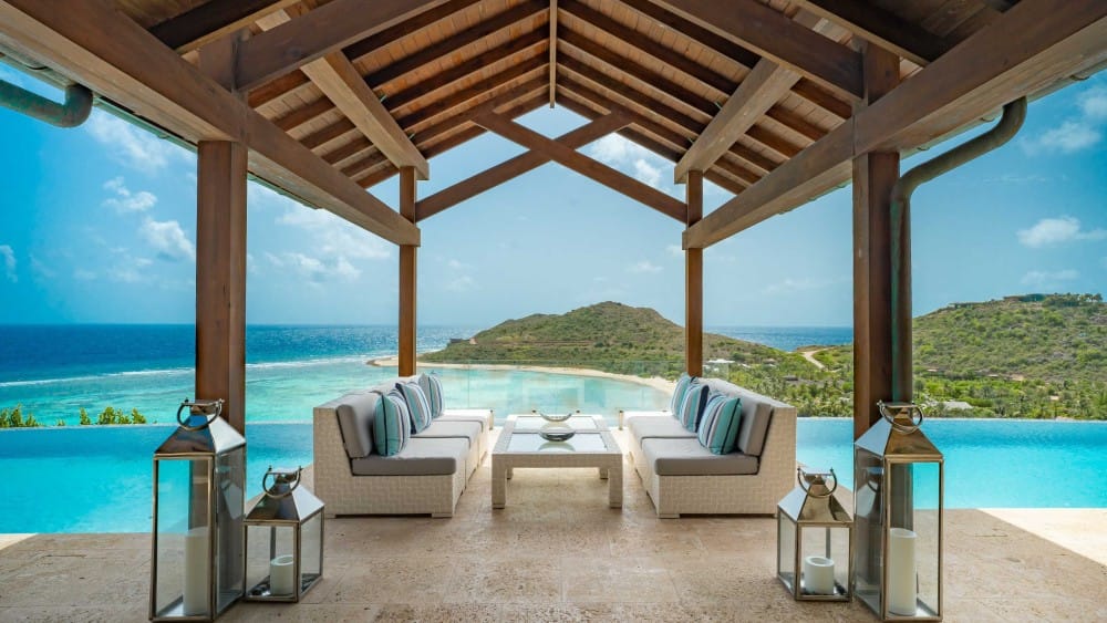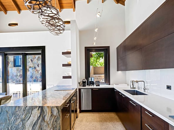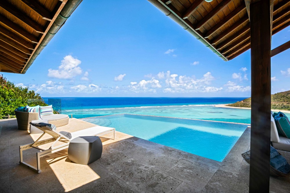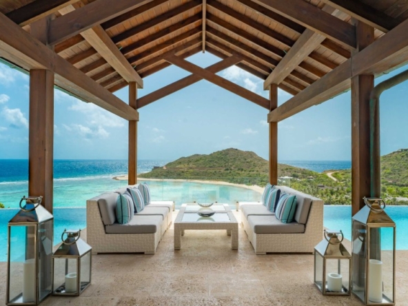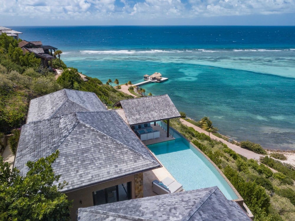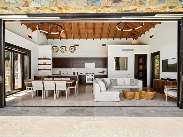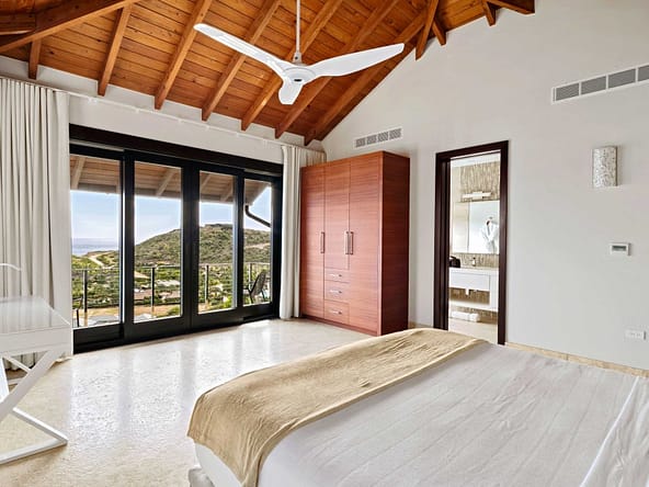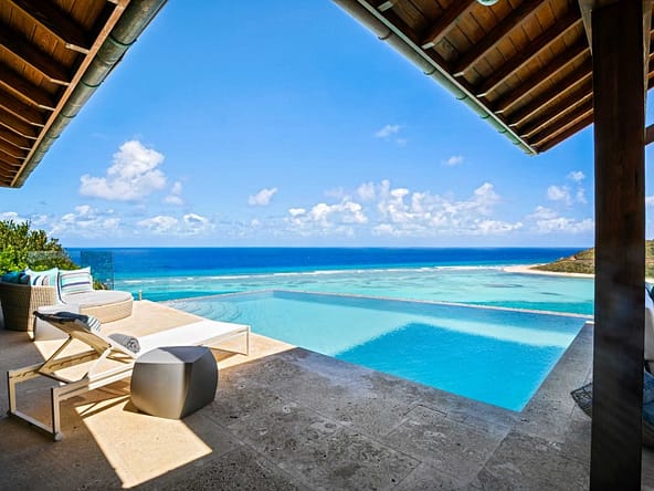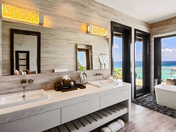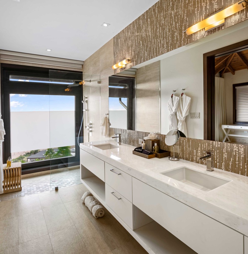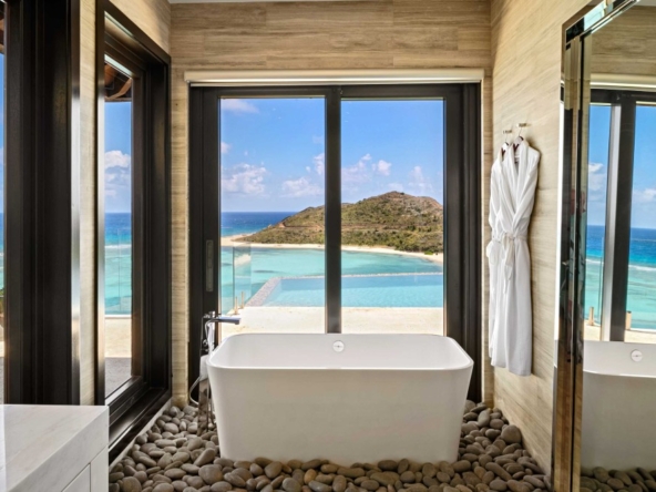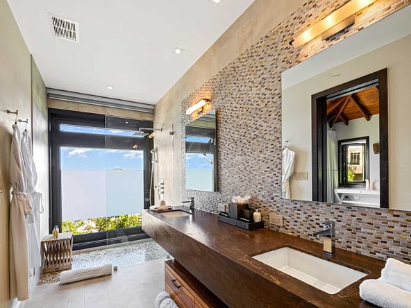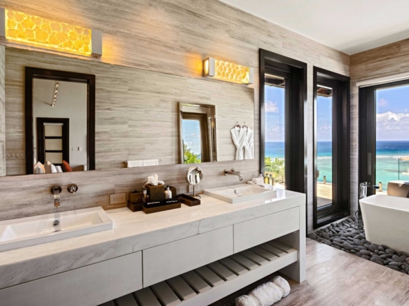 Perched on the North Ridge of the community sits Waters Edge Villa, a piece of luxury BVI real estate. Enjoy endless ocean views from the villas graceful indoor and outdoor living spaces, both characterized by clean lines, natural stone and floor-to-ceiling glass doors and windows.The master suite is complete with large walk-in closets and a luxurious ensuite bathroom with an outdoor shower and decadent soaking tub. Every comfort is considered in three additional guest rooms each with their own ensuite bathrooms, private outdoor patios, and separate entrances. This beautiful slice of BVI real estate boasts a vast infinity pool overlooking Oil Nut Bays pristine beach and protected bay, as well as ample space for outdoor lounging, dining, cooking, and entertaining.