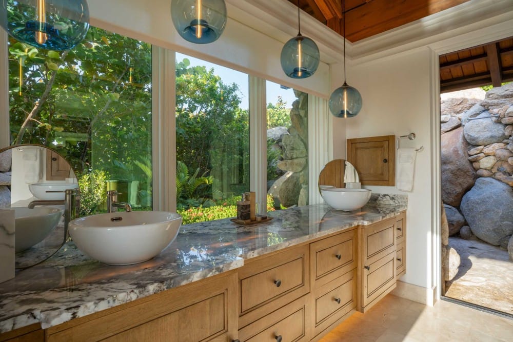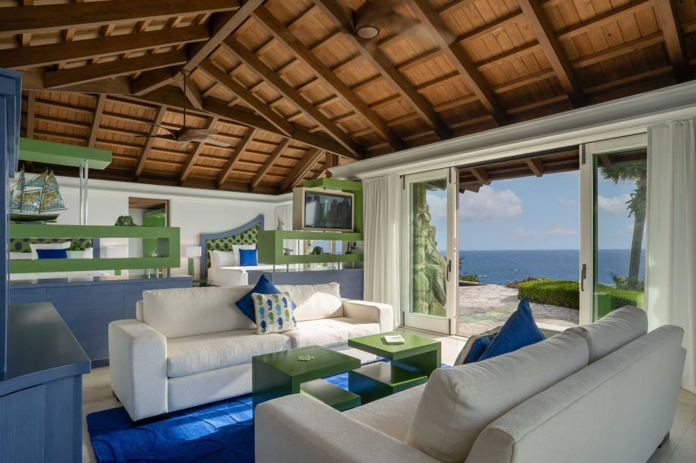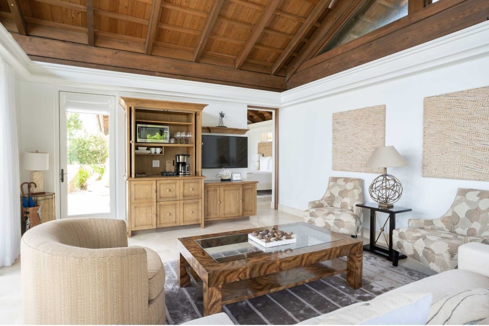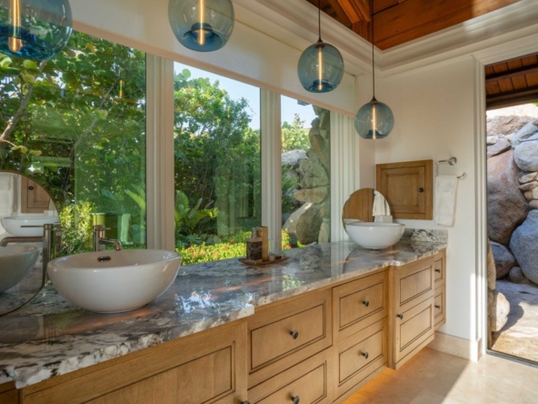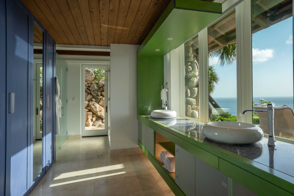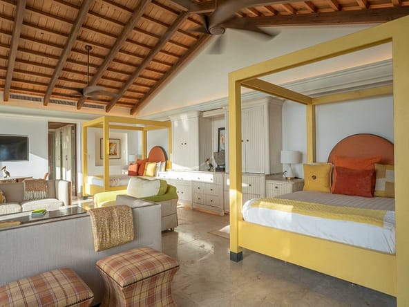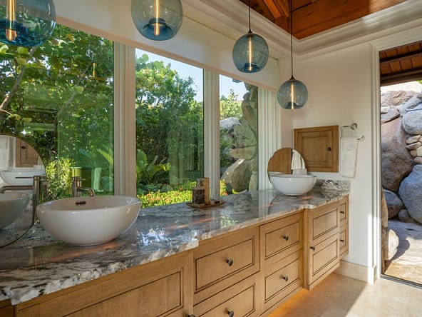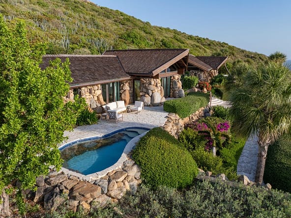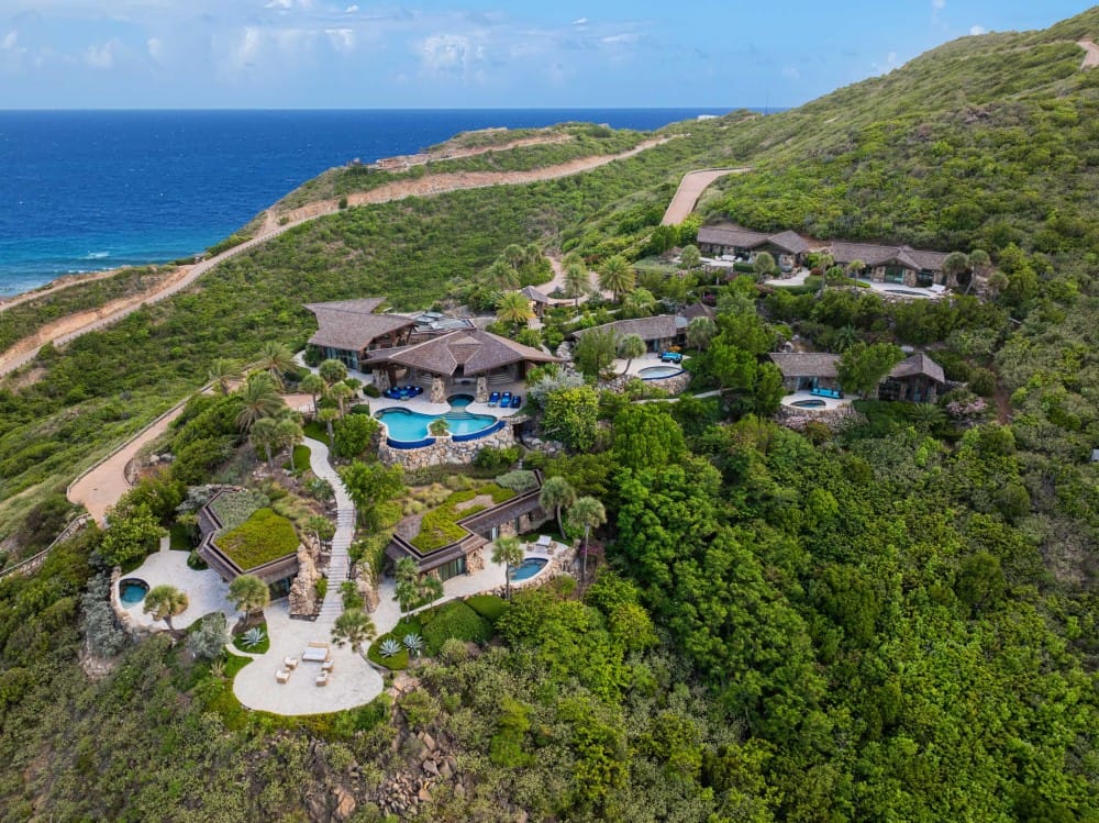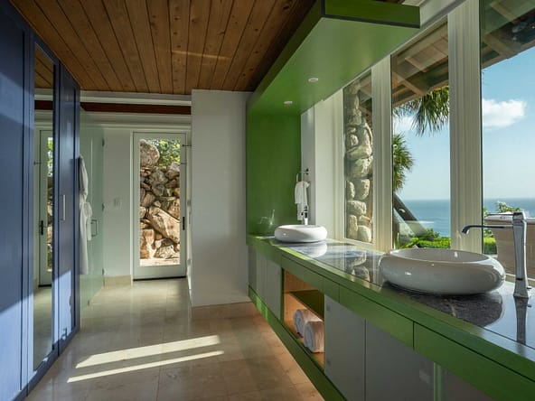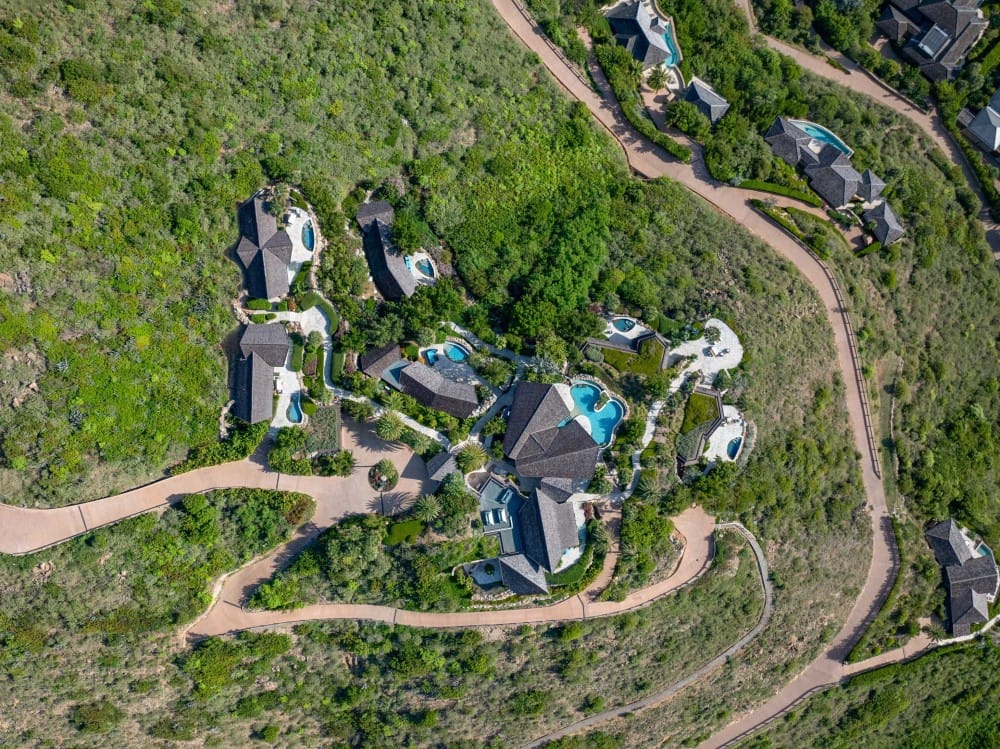 From its elevated hilltop position in the Estate Neighborhood, Wings sits on eleven stunning acres with panoramic 180-degree ocean views and complete privacy. The estate has been designed to take advantage of the views, breeze and topography and includes 9,513 square feet under air and another 14,159 square feet dedicated to open air living. The villa includes six luxurious free-standing bedroom suites, each with its own plunge pool, outdoor shower, ensuite bathroom, sitting area and kitchenette. The seventh pod, known as The Nest, serves as the heart of the estate with floor-to-ceiling windows and doors surrounding a spacious great room, dining room, gourmet kitchen and office. The Nest also houses a separate chefs kitchen and flex space with a convenient Murphy bed and office space. A large outdoor area called The Bird Bath sits just outside the Nest and features an impressive outdoor dining area, stunning infinity pool and generous lounge areas. The lower patio, called The Perch includes a fire pit and seating area for exceptional stargazing. Designed for grand gatherings, Wings is ideal for weddings, corporate retreats, and large family vacations, with seamless access to both secluded luxury and the resorts amenities.
